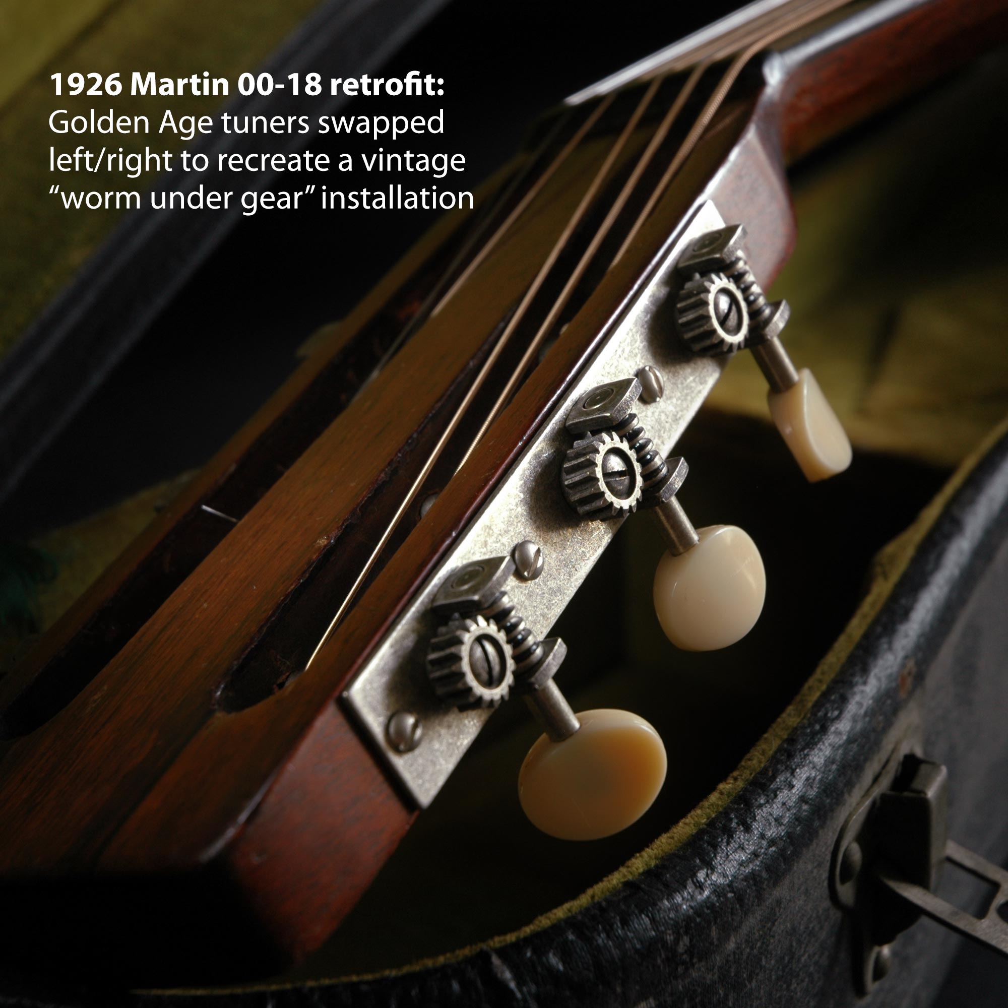 „Die Tuner zur Wiederherstellung des Golden Age sind wirklich großartig. Ich habe sie gerade auf meinen 1929 Gibson L-1 gesetzt...Mir gefällt die Tatsache, dass jemand sich die Mühe gemacht hat, sie richtig aussehen zu lassen.“ – John Evans, Brüssel, Belgien