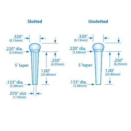 Die geschlitzten Stifte haben einen 0,070" (1,78 mm) Strangschlitz.