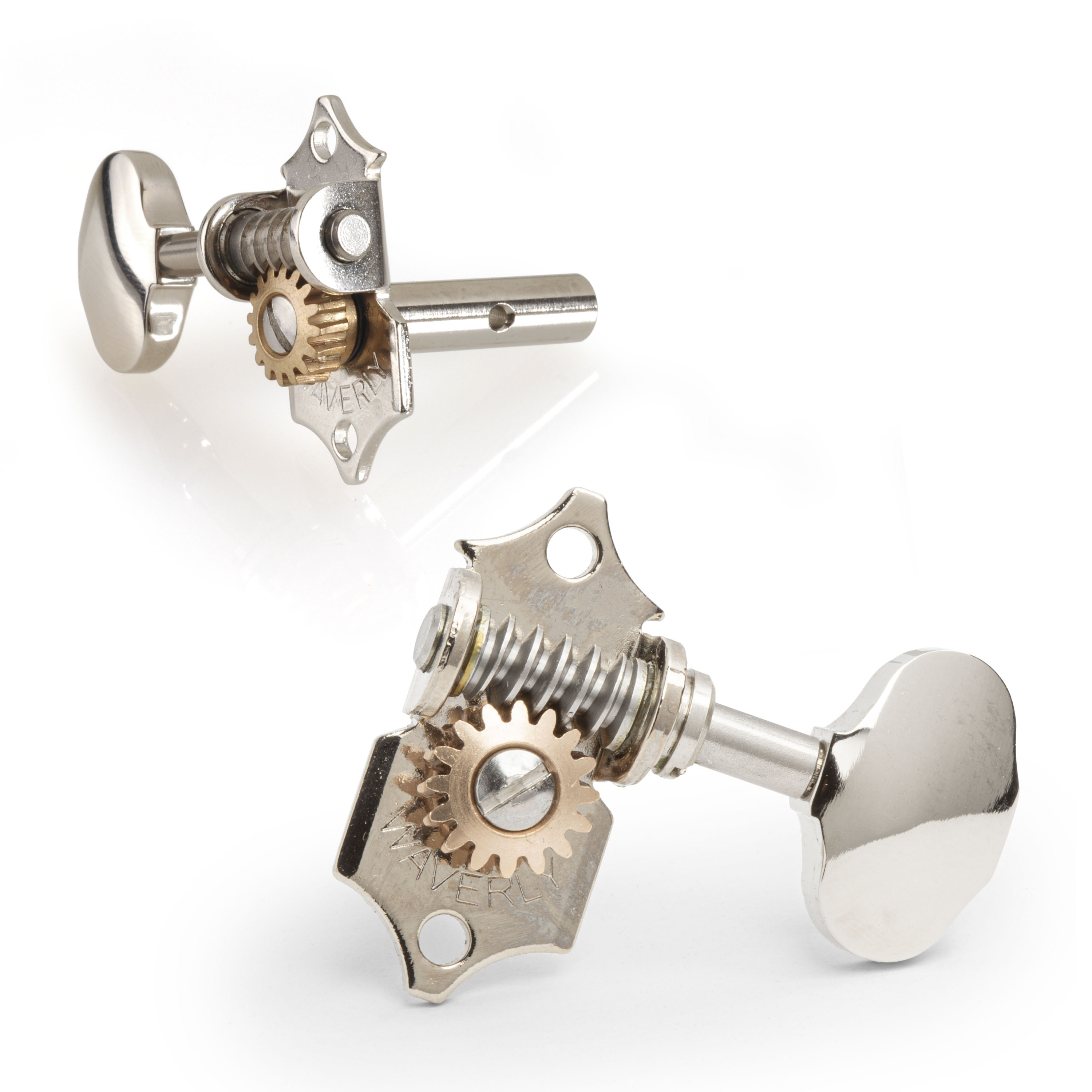Waverlys bekannter Getriebemechanismus ist unübertroffen. Waverly-Stimmmechaniken verfügen über eine bewährte, präzise gefertigte Konstruktion, die eine genaue und effiziente Ausrichtung der Zahnräder gewährleistet. Schneckengetriebebuchsen aus Nylon sorgen für ein geschmeidiges Drehgefühl. Das Ergebnis: Nichts ist locker – deine Gitarre ist gleichmäßig gestimmt und hält die Stimmung.