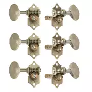 Die robusten Stahl-Basisplatten haben die authentische 1930er -Fußabdruckfläche. Die String-Schäfte sind aus Messing im Vintage-Stil mit geraden Einlochöffnungen und einem Durchmesser von 1/4" für 3-links/3-rechts geschlitzte Steckköpfe. Schlitzkopf-Befestigungsschrauben runden den Vintage-Look ab.