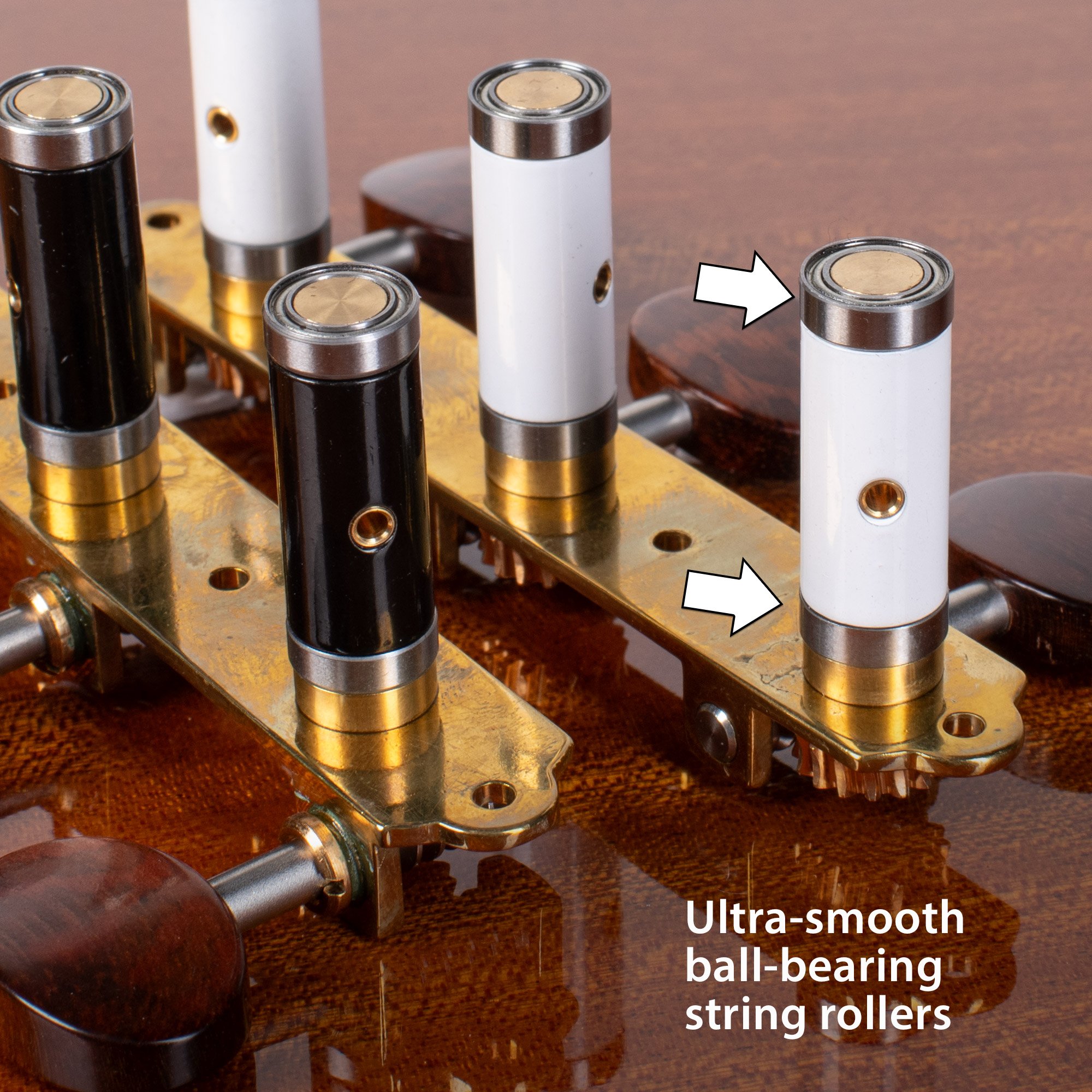 - Präzise Kugellager auf jeder Strangrolle verhindern Binding und sorgen für eine neue Stufe der reibungslosen, mühelosen Abstimmung für den Künstler.
