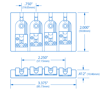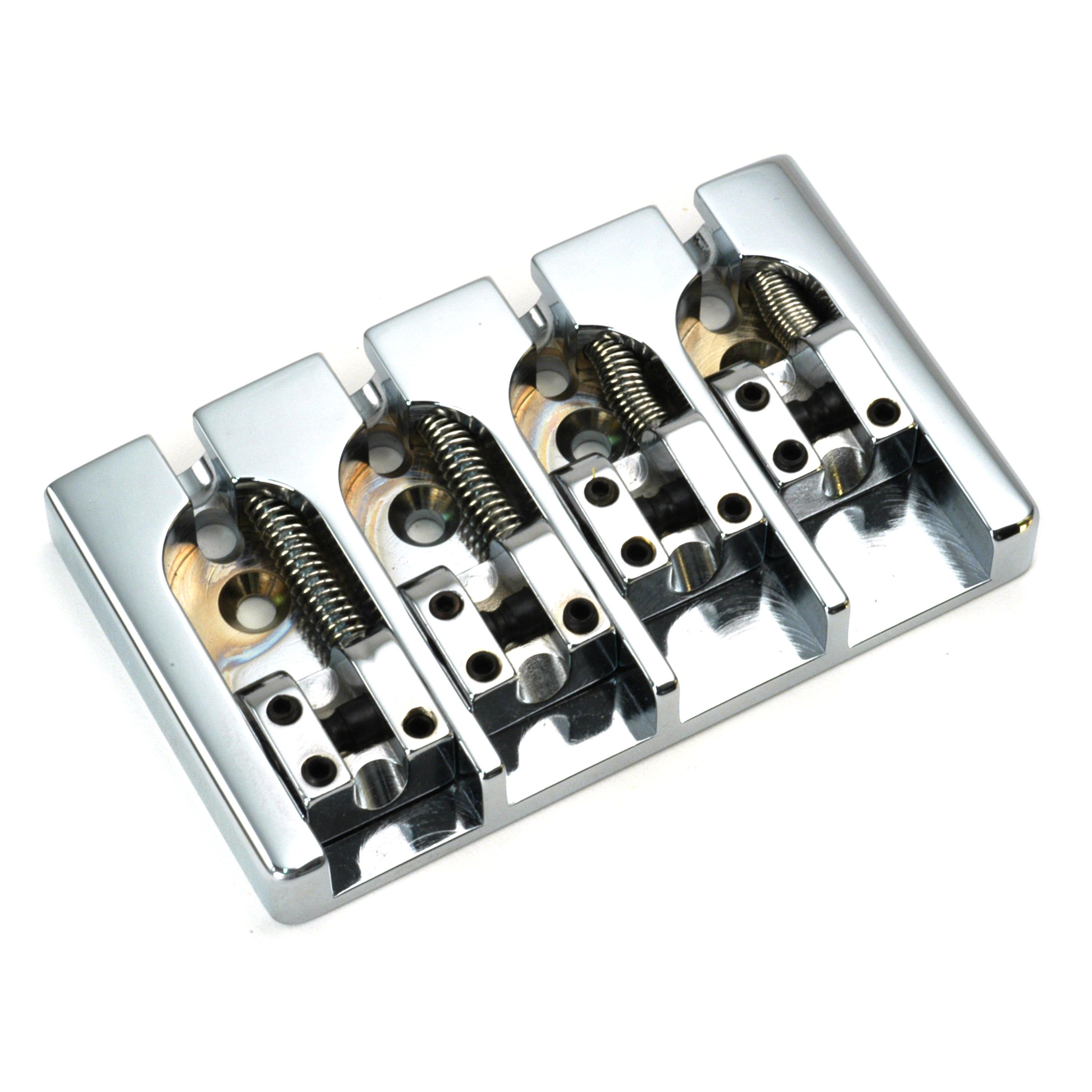 Diese massive Messingbrücke spiegelt die beeindruckende Verarbeitung und das innovative Design von Hipshot wider. Die kanalisierte Basisplatte verhindert seitliche Sattelbewegungen, eine großartige Idee, die deinen Bass im Gang hält. Neben der präzisen Intonation und Höhenverstellung kann jeder Sattel über 1/16" von Seite zu Seite eingestellt werden, um einen variablen Fadenabstand zu gewährleisten – eine schöne Note, um sich bequem an eine Vielzahl von Halsbreiten anzupassen. Ringe können von oben oder durch den Körper montiert werden, ein weiteres vielseitiges Merkmal.Befestigungsschrauben und Inbusschlüssel im Lieferumfang enthalten.