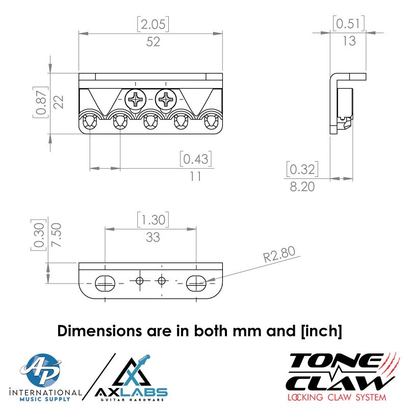 . Die Tremolo-Federn werden um einen formschlüssigen Pfosten geschlungen und dann mit einer Klemme fixiert. Dies sorgt für eine maximale Vibrationsübertragung und führt zu einem besseren Ton, einer besseren Erhaltung und einer besseren Abstimmungsstabilität.