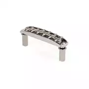 Die Brücke verfügt über das ursprüngliche Schwenkdesign: Die Stützpfosten passen in vertiefte Gehäusebuchsen und ruhen auf höhenverstellbaren Innensechskantschrauben. Dadurch kann die Brücke mit Tremolo-Bewegung geschwenkt werden, um eine genauere Rückkehr zur Steigung zu ermöglichen. Sechs einzelne Stahlsättel mit Gewinde ermöglichen eine Intonationseinrichtung und kleinere Strangabstandsvarianten. Sattelhöhen sind in den Inbussen einstellbar.Zeichenfolgen-Spread: 2-3/16" (55,56 mm)