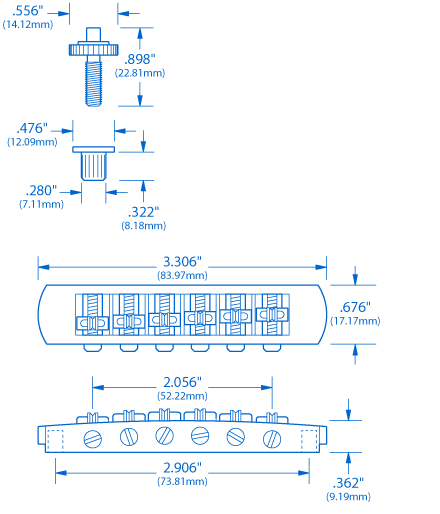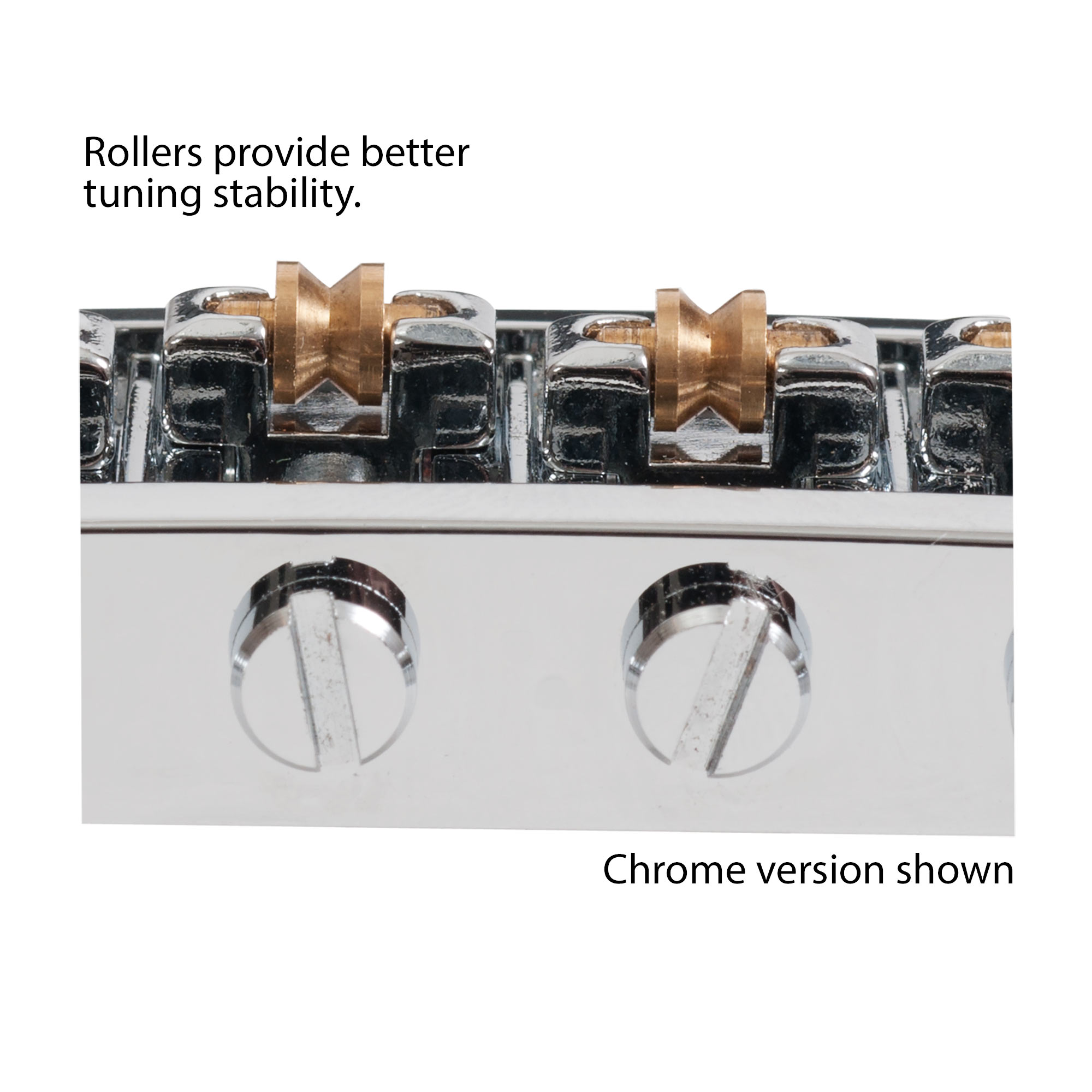 Wir haben diese Rollbrücke für Bigsby Vibratos anstelle der Nashville Tune-o-matic entworfen. Er entspricht dem 12"-Radius des Nashville, sodass Sie die String-Aktion beibehalten, die Sie gewohnt sind. Wir haben ihm ein niedriges Profil gegeben, um die Stränge auch vom Brückenkörper fernzuhalten und so eine häufige Quelle von Vibratoproblemen zu eliminieren.