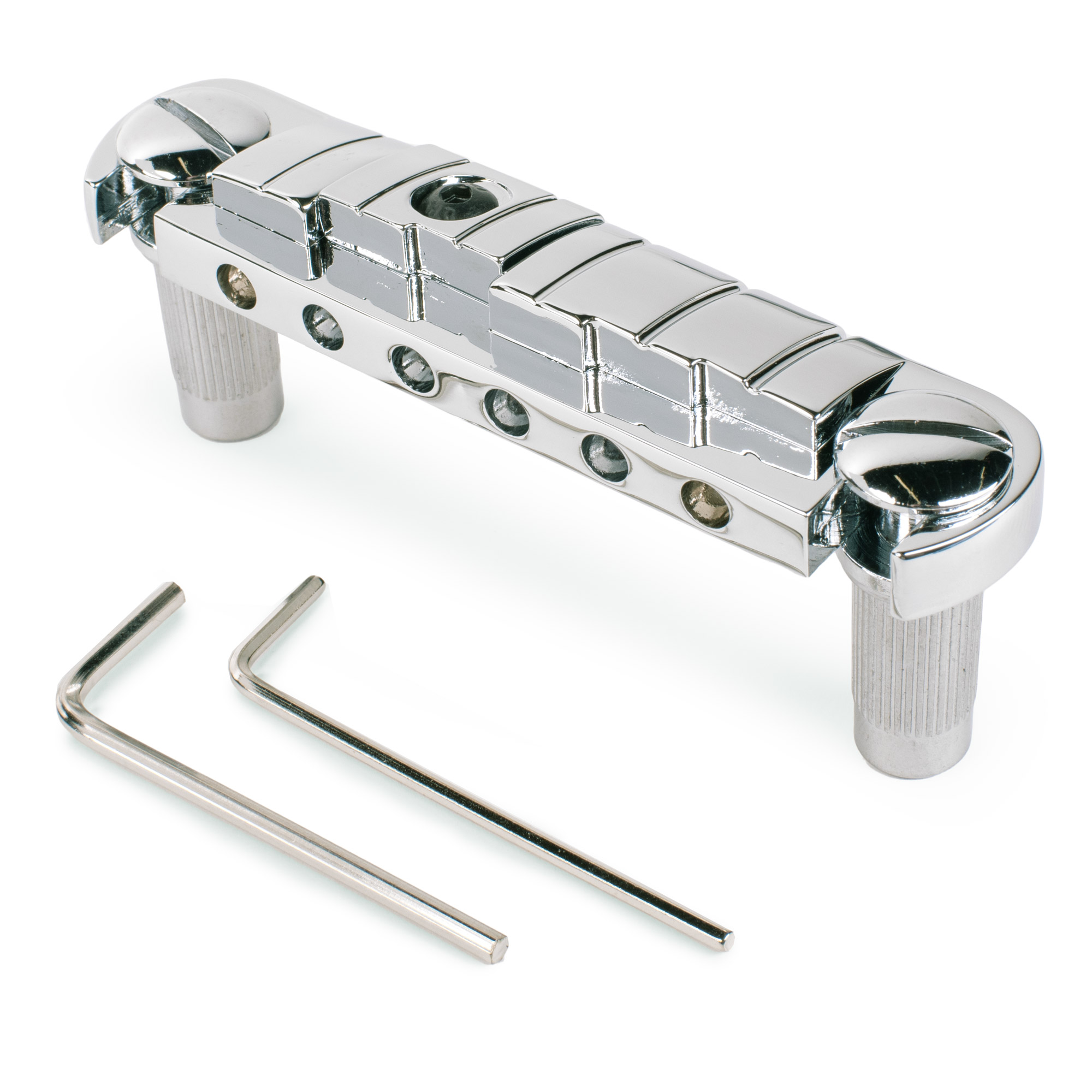 Zwei verstellbare Schrauben für die gesamte Intonation von Seite zu Seite sowie ein verstellbarer B- und G-Sattel zur Feinabstimmung Ihrer Problemstränge.