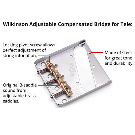 Endlich eine 3-Sattel-Brücke, die eingestellt werden kann, um im Tun zu spielen! Eine Verriegelungs-Drehschraube in der Mitte jedes Sattels ermöglicht eine perfekte Einstellung der Fadenintonation.