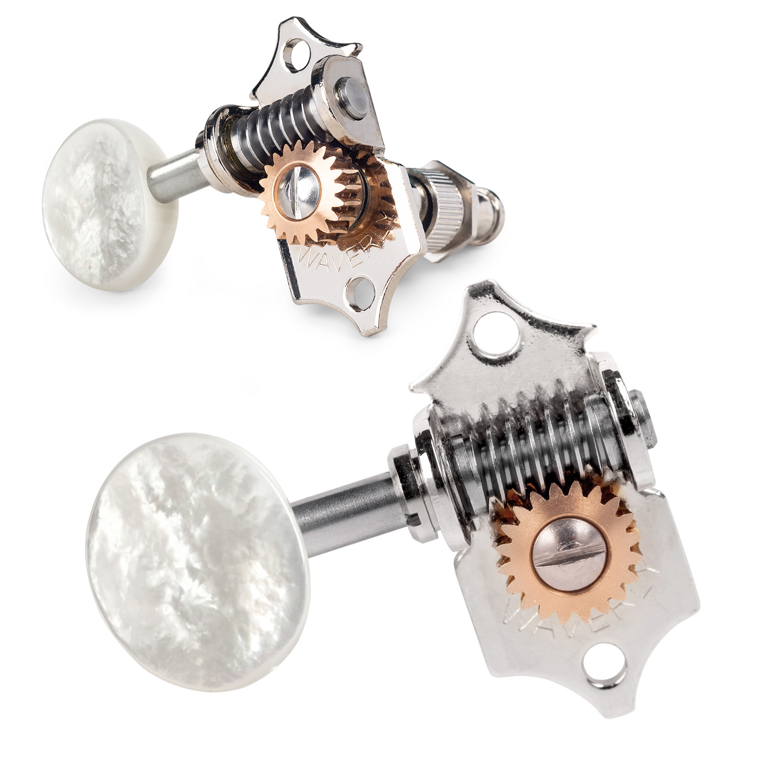 Waverly verwendet nur die qualitativ hochwertigsten Materialien für jeden Teil des Tuners. Die Zahnräder aus Edelstahl und bearbeiteter Bronzelegierung sind langlebiger als Tuner in Standardqualität.