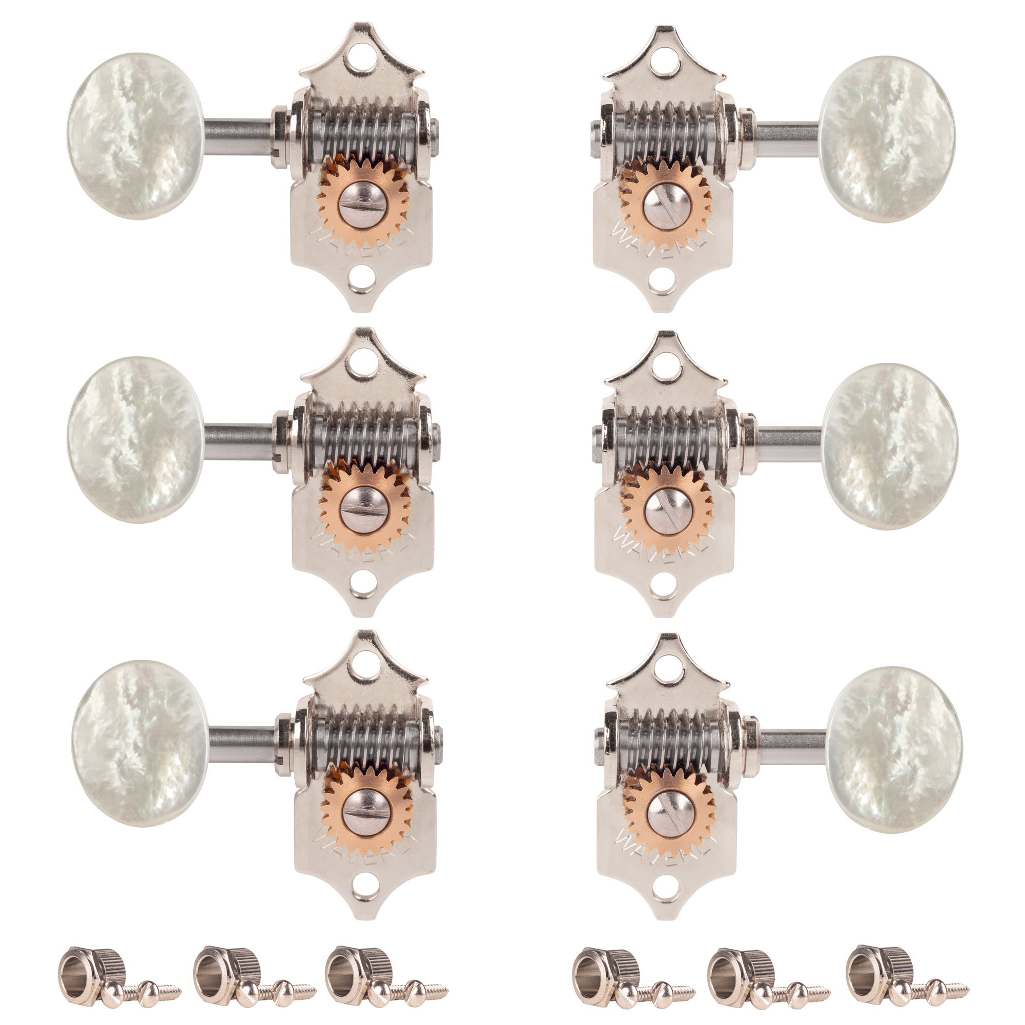 ausgelegt. Wir stellen jedes Set in unserem Ohio-Shop zusammen, und wenn es jemals scheitert, werden sie von unserem Lifetime Promise unterstützt. Kein anderer Tuner ist mit dieser Zuverlässigkeit verbunden. Dieses zeitlose Design, die felsige Konstruktion und der reibungslose, zuverlässige Betrieb machen Waverly Tuner seit mehr als 100 Jahren zum Favoriten sowohl von Musikern als auch von bekannten Gitarrenherstellern.