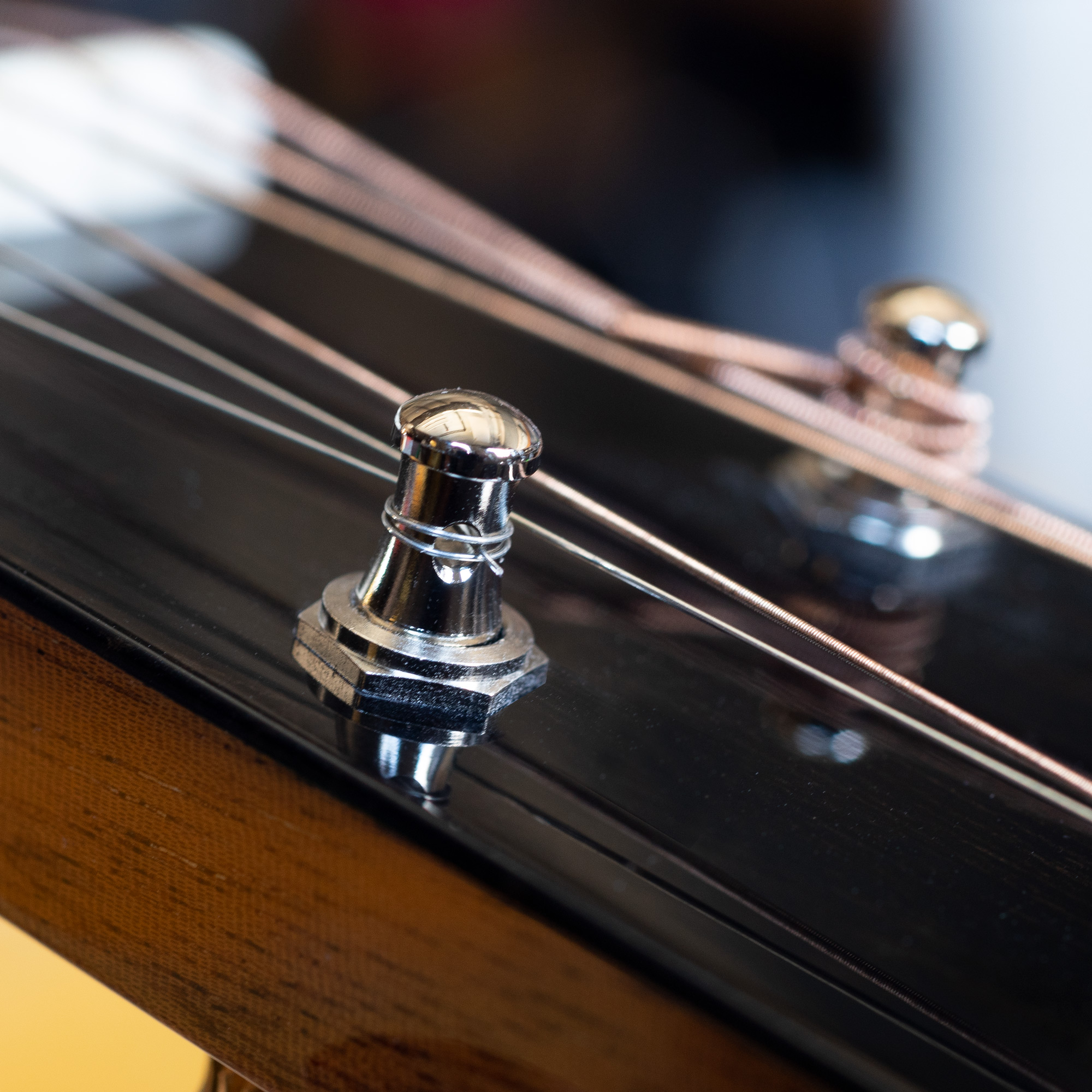 Die stabilen Grundplatten aus Stahl haben die authentische Größe aus den 1930er. Die Stringpfosten sind aus Vintage-Kegelmessing mit einem Durchmesser von 1/4" und gerändelten Sechskantbuchsen aus Messing mit Presspassung für Zapfenlöcher mit einem Durchmesser von 11/32" (8,73 mm). Befestigungsschrauben mit Schlitzkopf runden den Vintage-Look ab. Bei vielen älteren Martins und Gibsons musst du keine zusätzlichen Löcher bohren.