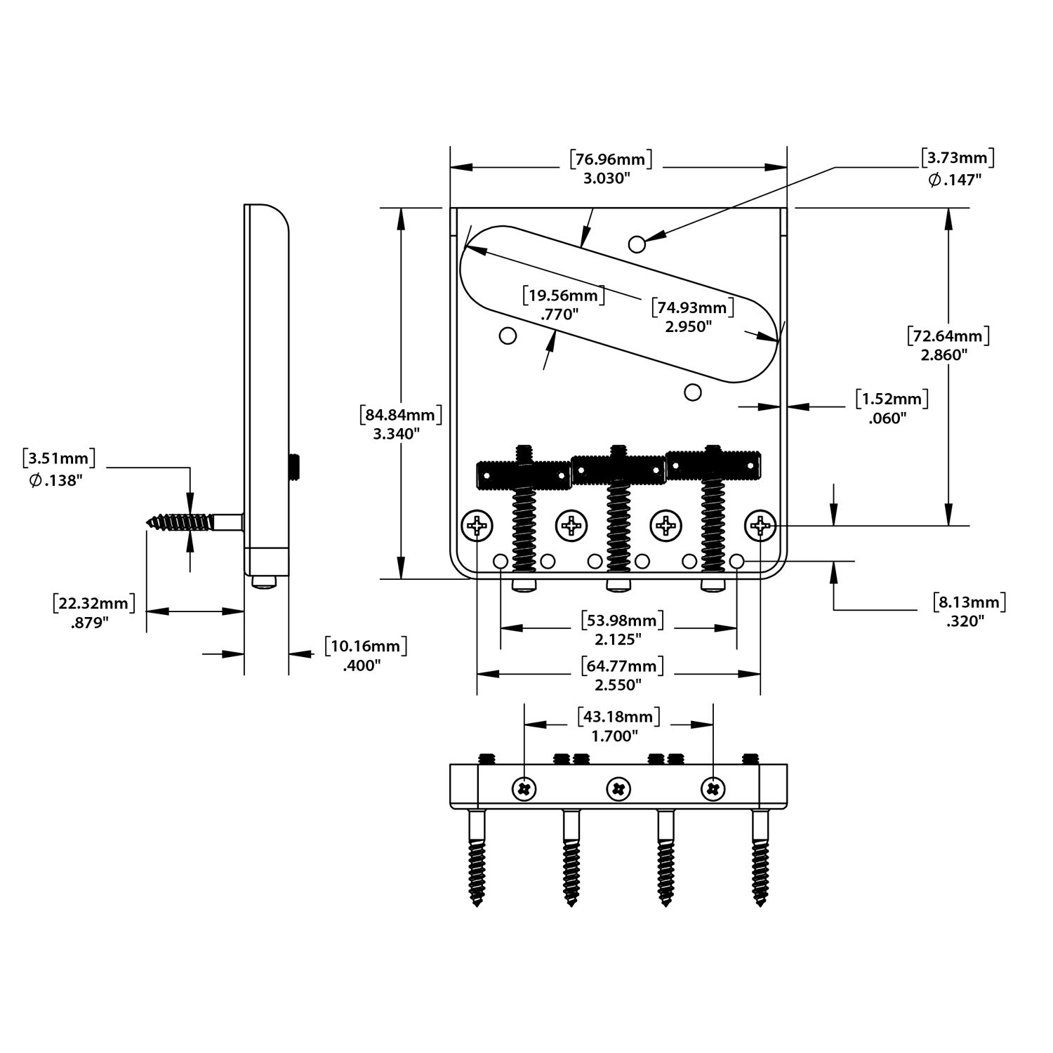 Gesehen auf Teles von Ende 1950ern bis Ende 1960er. Gewindestangensättel aus Stahl sorgen im Vergleich zu Messing für mehr Aufbiss und Glitzer am oberen Ende. Die Threads ermöglichen auch benutzerdefinierte Anpassungen des Zeichenfolgenabstands.
