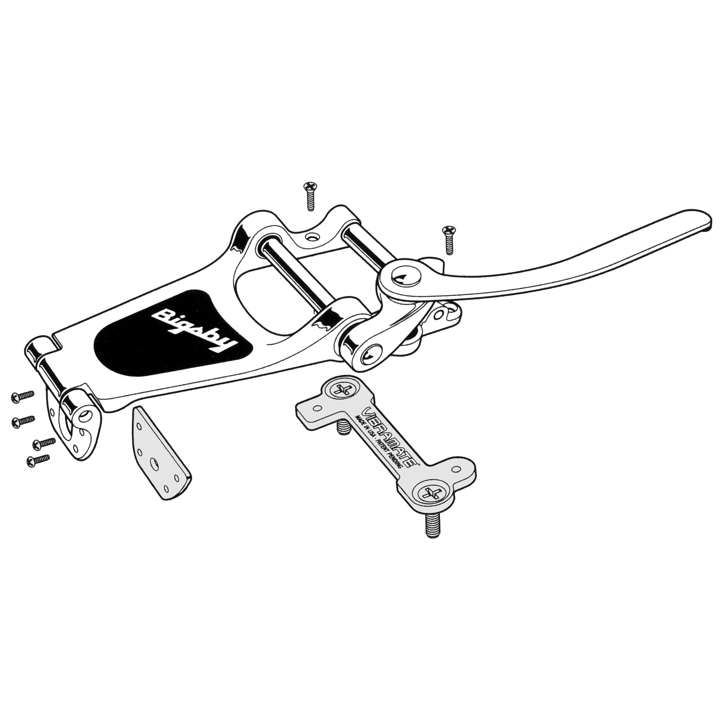 ohne neue Löcher in Ihr Gerät zu bohren! Das Vibramate Adapter-Kit enthält alle Hardware, die Sie für eine einfache, sichere Installation mit nur einem Schraubendreher benötigen, einschließlich Filzpads zum Schutz des Gitarrenfinishs. Hochwertiges Aluminium entspricht dem traditionellen Bigsby, für Stabilität und großartigen Ton.