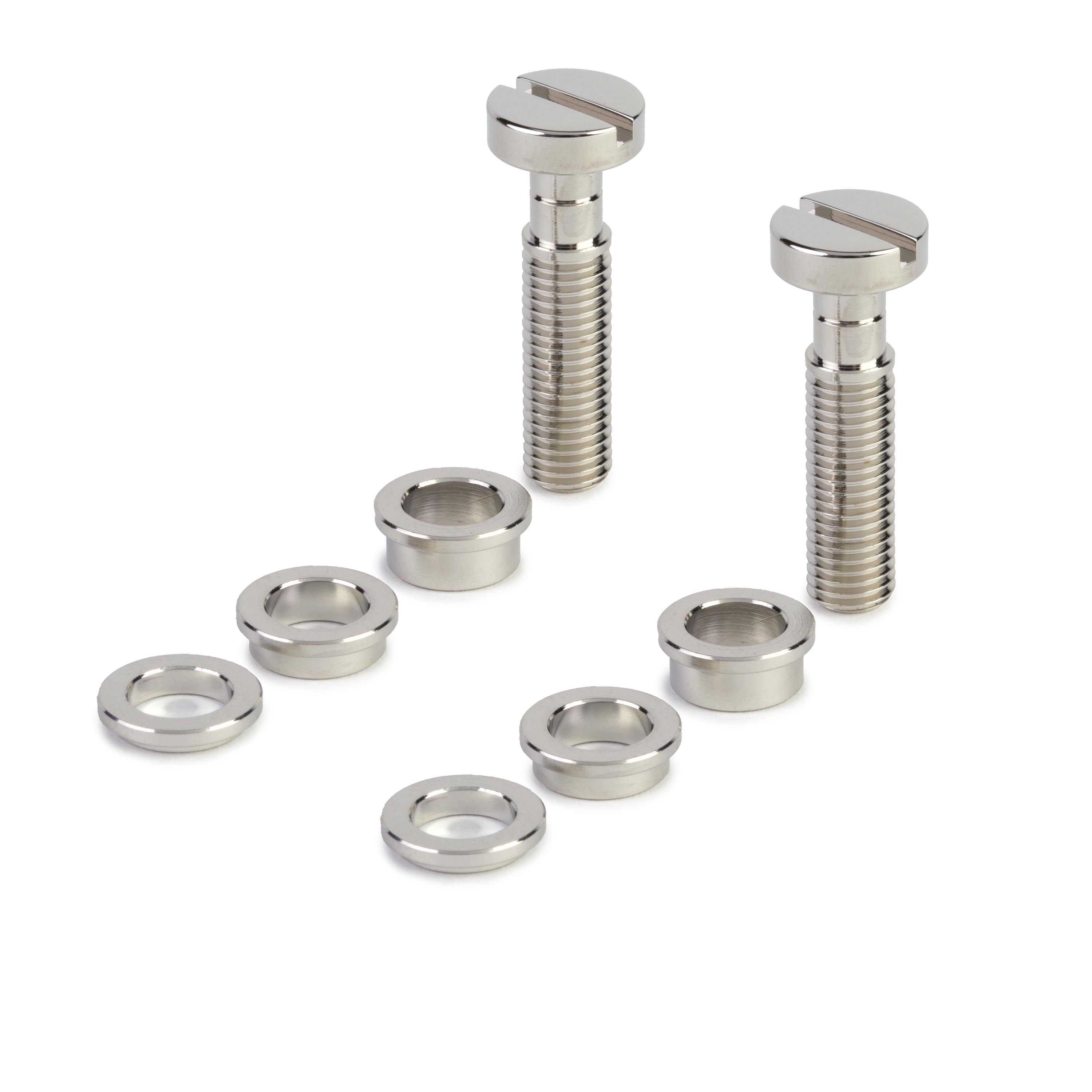 Mit den drei mitgelieferten Sätzen unterschiedlicher Aluminium-Abstandshalter können Sie den perfekten Abstand zwischen den Strings einstellen. Wenn sich das Rückstück in der richtigen Höhe befindet, müssen Sie sich keine Sorgen darüber machen, dass Ihre Brücke zusammenfällt.