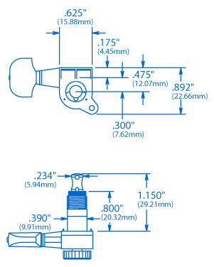 Die Planet Waves 6-in-line Auto Trim Tuning Machines sind Präzisionstunings, die automatisch die überschüssige Zeichenfolge schneiden und gleichzeitig die Zeichenfolgen ändern. Dadurch entfällt der Bedarf an Kettenschneidern, die die Zeichenfolgenwechsel einfach und schnell machen.