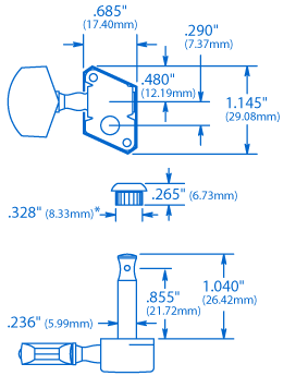 Buchsen: Wir empfehlen den Buchsenfräser Nr. 2061 (0,328 Zoll Durchmesser), um eine saubere, genaue Senkbohrung für einen professionellen Auftrag zu schneiden. Passen Sie die Press-Fit-Tunerbuchsen richtig an, damit Ihre Tuner reibungslos funktionieren.