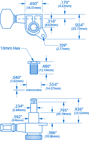 Ziehen Sie die Schnur durch das Abstimmloch, und mit einer Drehung des Daumenrads wird die Schnur in der Stange verriegelt. Nur ein paar Umdrehungen des Tunerknopfs und ihr könnt nicken. Da es nur eine teilweise Umhüllung der Schnur um den Pfosten gibt, wird die Abstimmungsstabilität drastisch verbessert. Locking Tuner eignen sich hervorragend für nicht-locking Tremolo-Gitarren und für Spieler, die sich stark biegen.