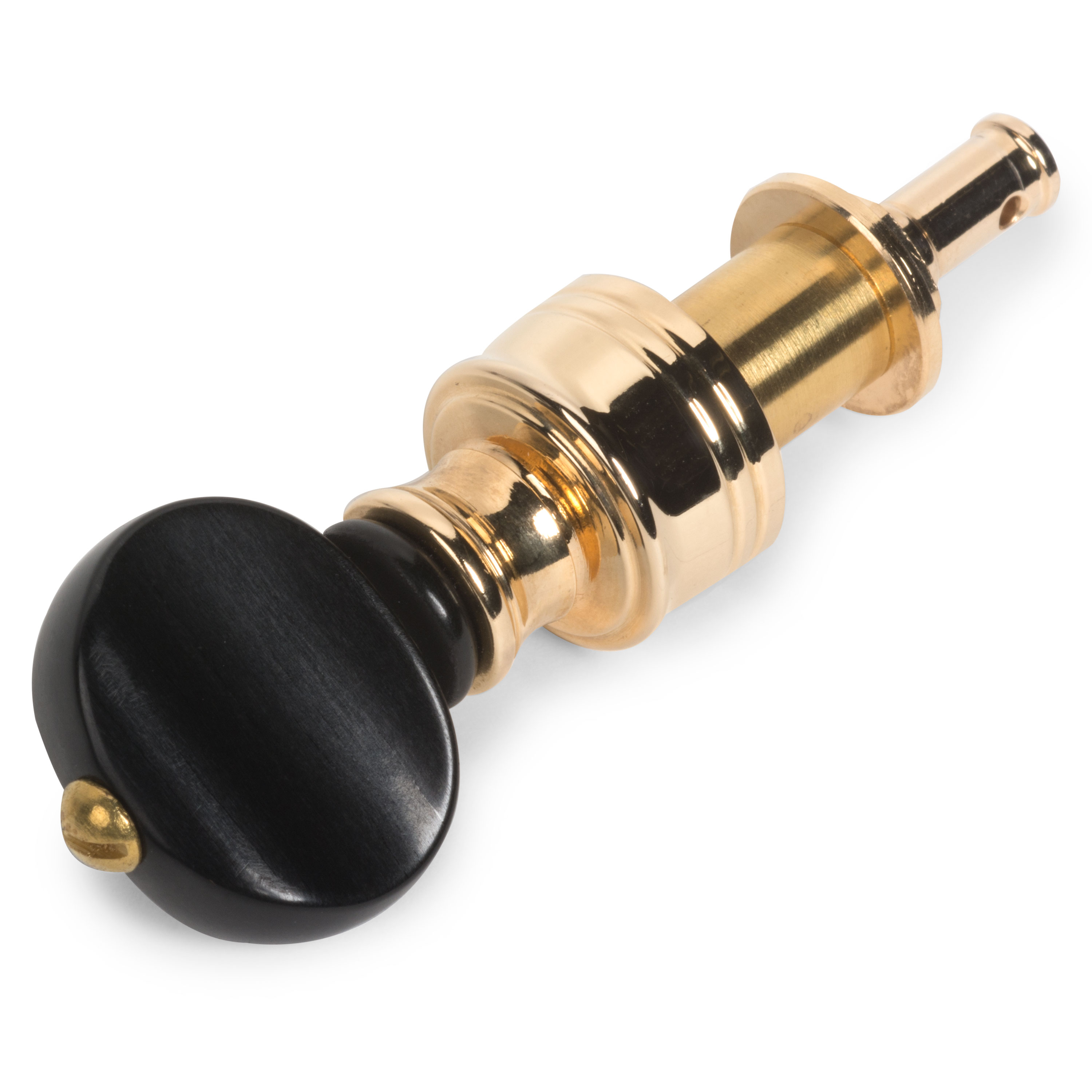Diese revolutionären Tuner haben ein viel höheres Übersetzungsverhältnis (10:1) als die alten Tuner und absolut kein Spiel. Das Zahnrad hat immer drei Kontaktpunkte innen, die im Wesentlichen den Pfosten verriegeln. Und diese Tuner benötigen keine Spannschrauben oder Lederscheiben, um das Verrutschen der Saite zu verhindern – das Zahnrad hält alles fest.