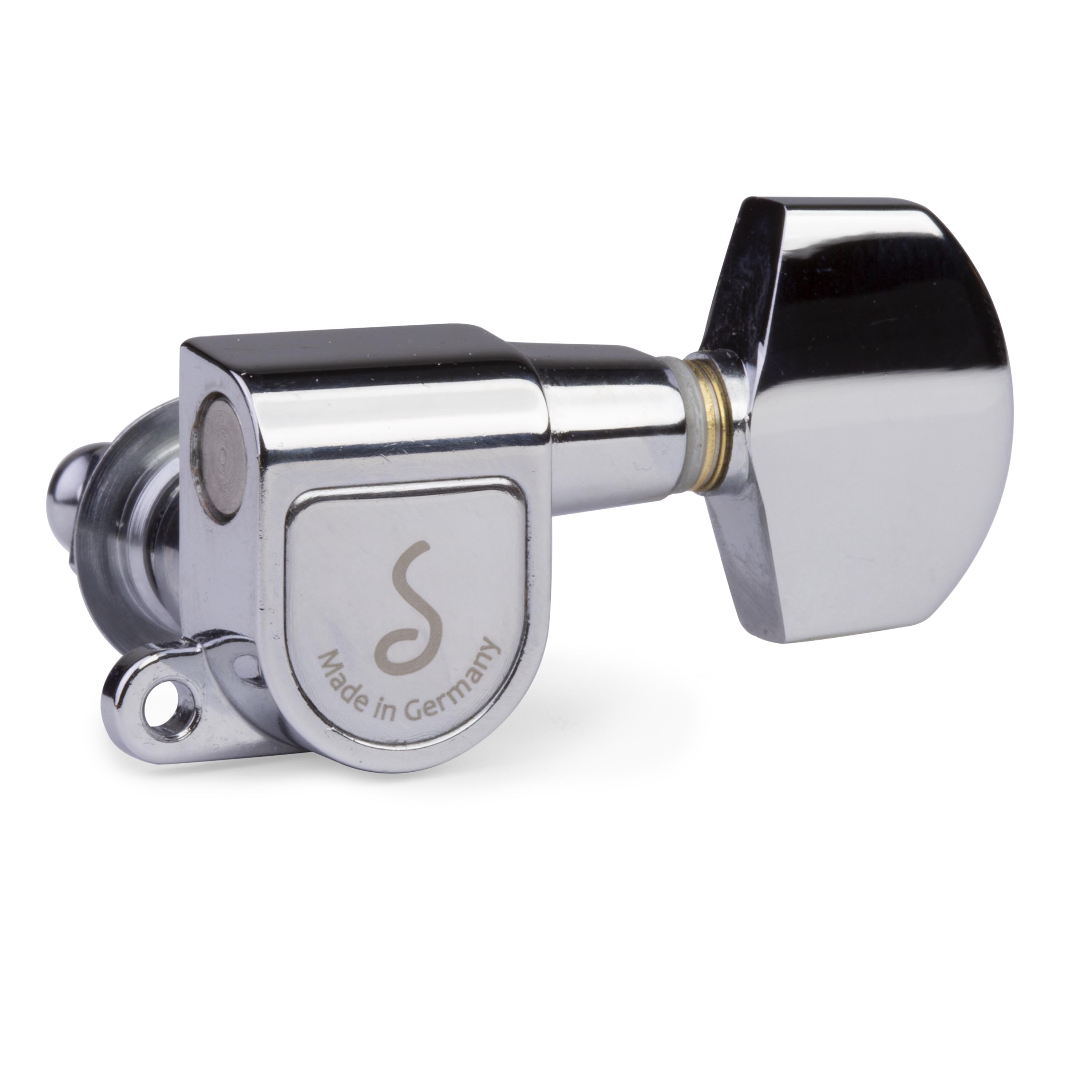 Alle Schaller M6 Tuner benötigen 10 mm (13/32")-Durchmesser-Stiftlöcher. In 6er-Sätzen erhältlich, mit Befestigungsschrauben, Gewindebuchsen und Unterlegscheiben.