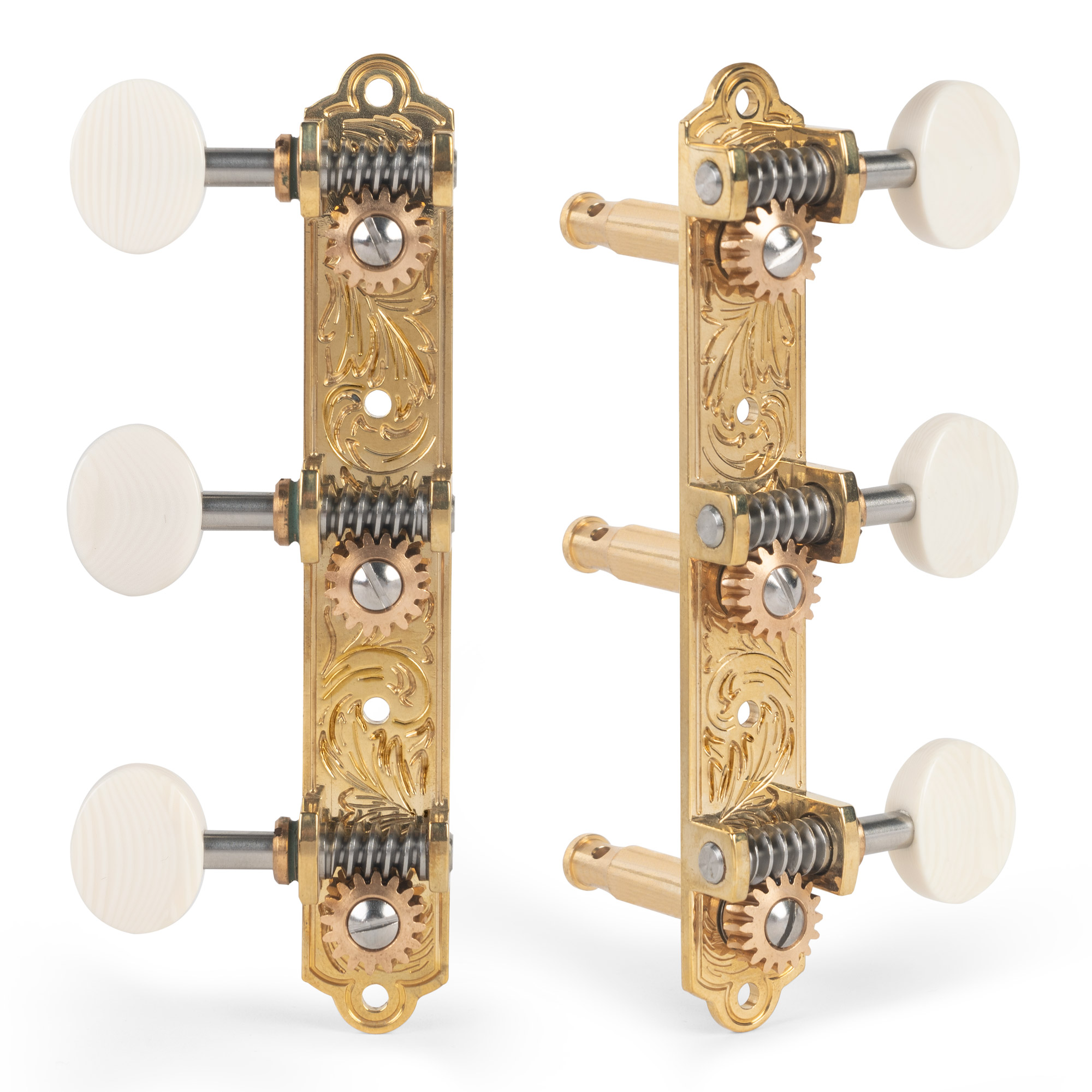 „Waverly 3-On-Plate“-Stimmmechaniken für Gitarre mit Ivoroid-Flügeln für massive Kopfplatten