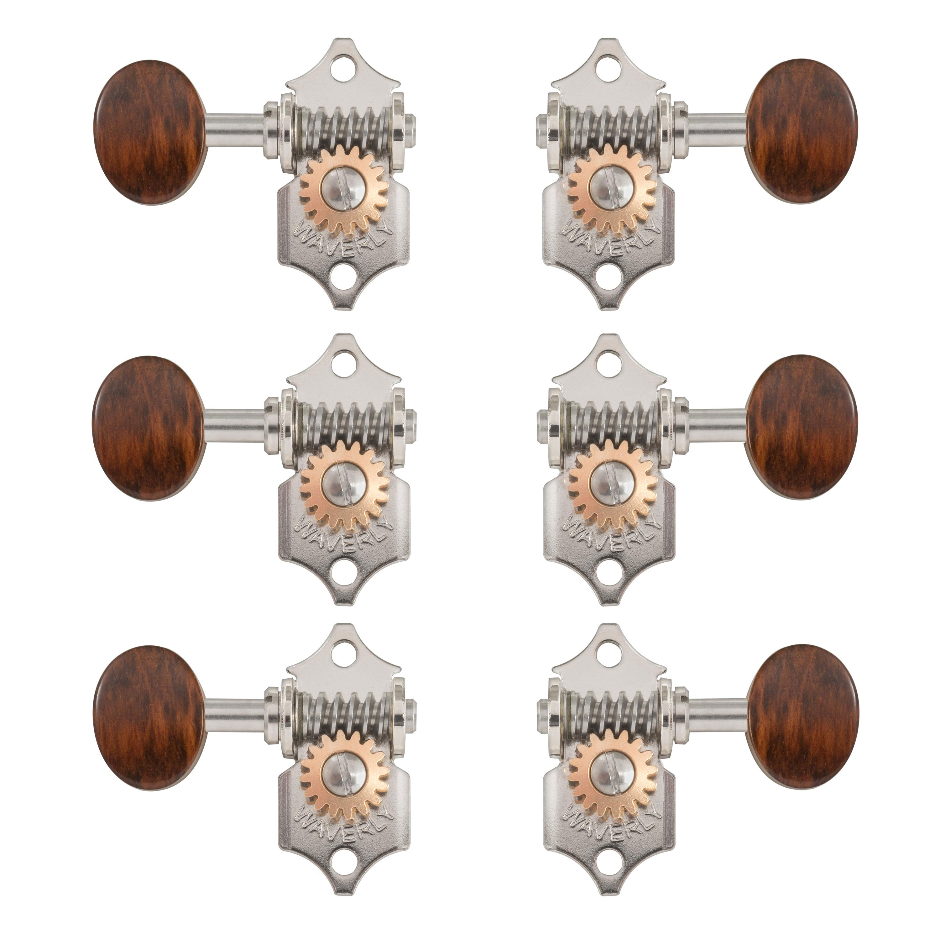Tuning Machines: Die Wahl der renommierten Gitarrenhersteller für ihre besten Instrumente. Waverlys verfügen über konische Strangstangen im alten Stil und Press-Fit-Innensechskantbuchsen aus Messing. Schneckengetriebe aus Edelstahl mit 16:1 Übersetzungsverhältnis. In diesem Satz mit 6 Schrauben für 3+3 massive Stiftköpfe enthalten. Auch separat erhältlich