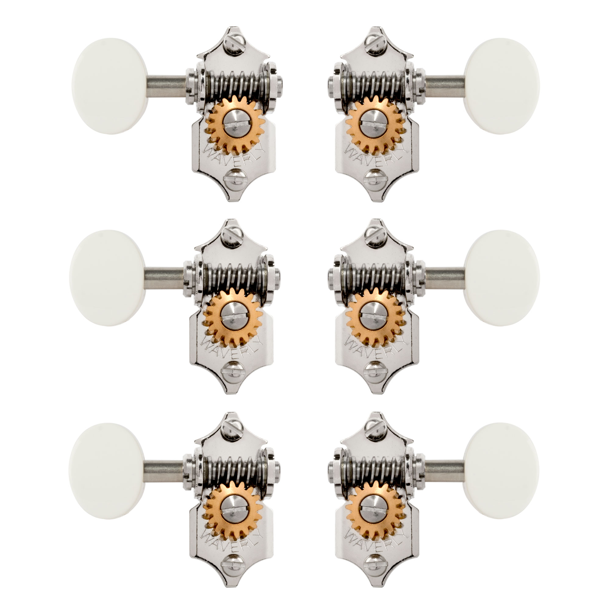 Tuning Machines: Die Wahl der renommierten Gitarrenhersteller für ihre besten Instrumente. Waverlys verfügen über konische Strangstangen im alten Stil und Press-Fit-Innensechskantbuchsen aus Messing. Schneckengetriebe aus Edelstahl mit 16:1 Übersetzungsverhältnis. In diesem Satz mit 6 Schrauben für 3+3 massive Stiftköpfe enthalten. Auch separat erhältlich