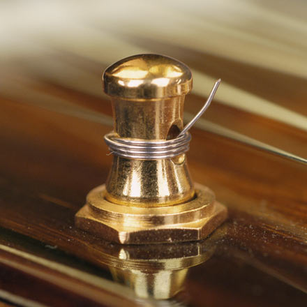 Authentische Knöpfe und Streichstifte: Knöpfe sind echtes Ebenholz. Verjüngte Strangpfosten im alten Stil aus vernickeltem oder vergoldetem Messing.