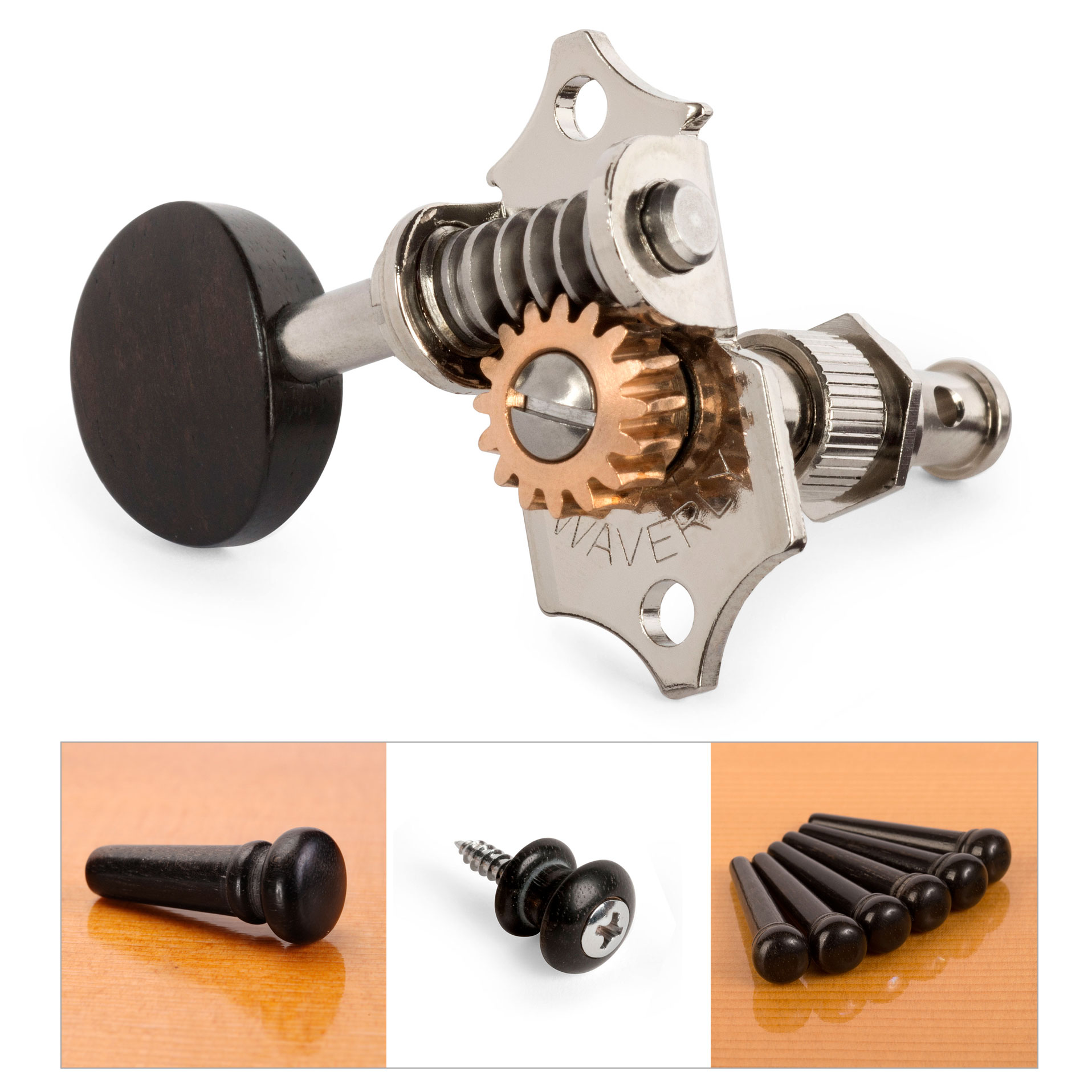Waverly-Stimmmechaniken für Gitarre mit Ebenholz-Flügeln für massive Kopfplatten
