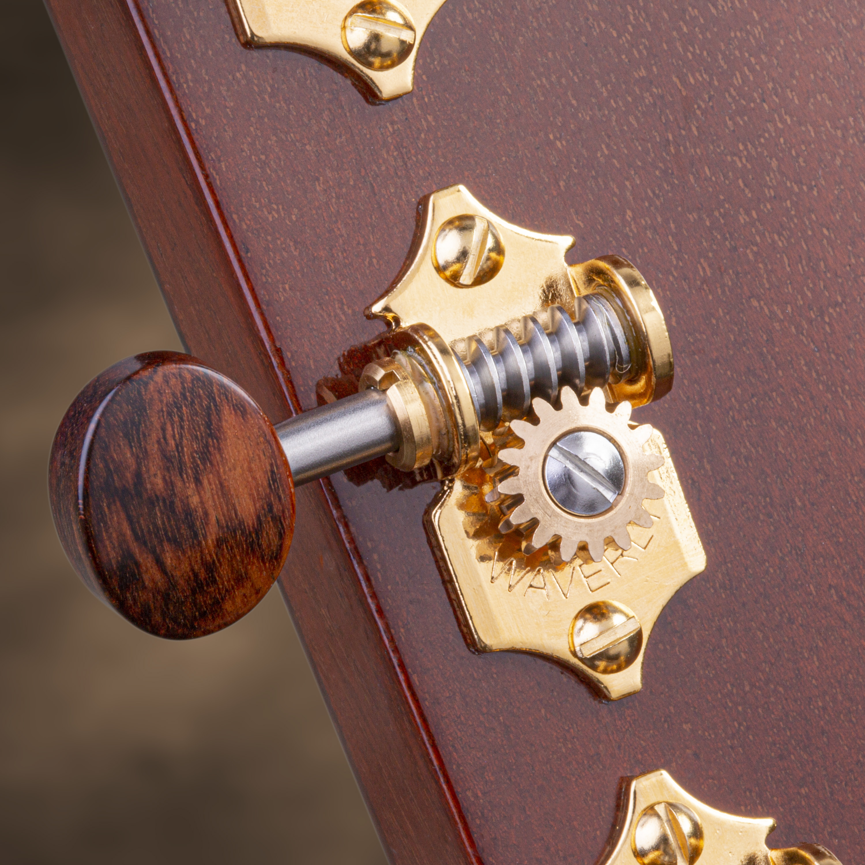 Mit Waverly-Stimmmechaniken klingt deine Gitarre immer gleichmäßig gestimmt und hält auch die Stimmung. Das patentierte Design von Waverly kombiniert Edelstahl mit Bronze für eine glatte, rutschfeste Abstimmung. Die Waverly-Maschinen sind die perfekten Ersatz-Tuner für hochwertige Instrumente und passen präzise, ohne auf älteren Martin- und Gibson-Gitarren zu bohren. Hersteller wie C.F. Martin, Gibson, Collings, Santa Cruz, Huss & Dalton, Sams und Bourgeois wählen Waverlys für ihre besten Instrumente.