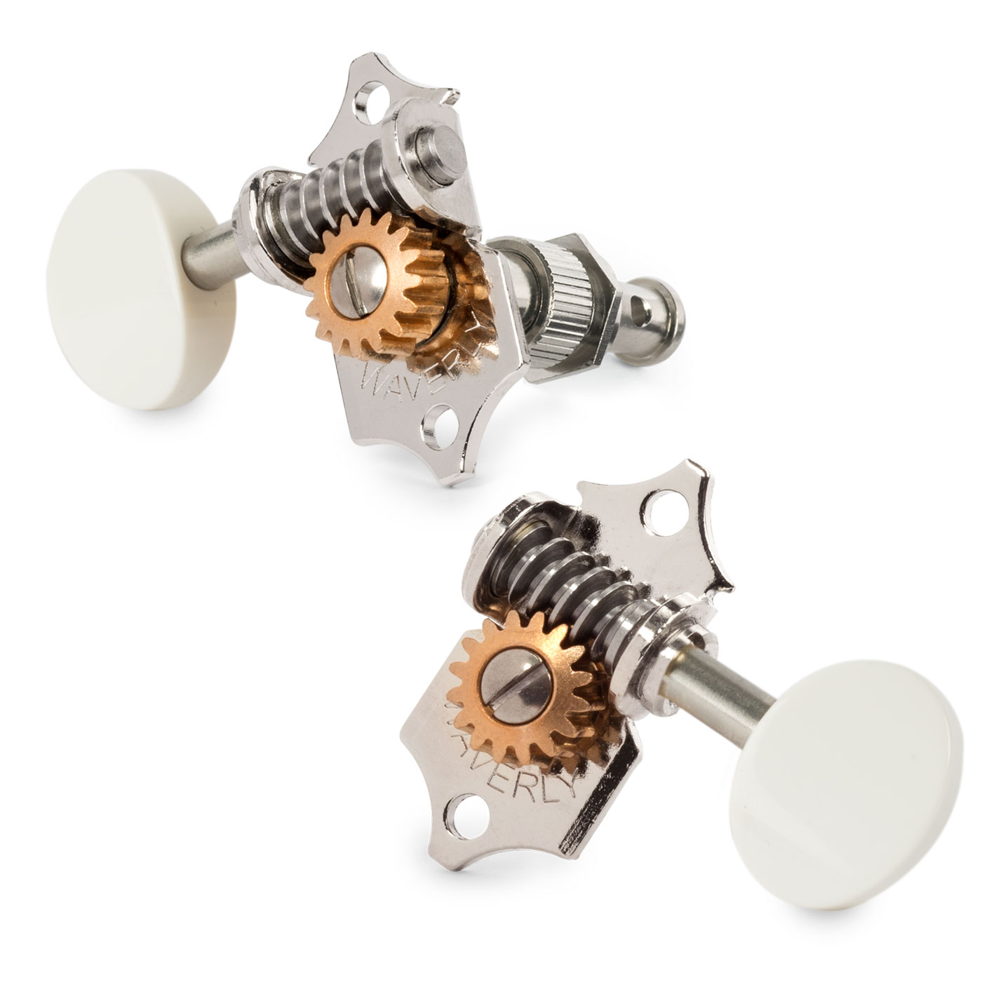 Waverly-Stimmmechaniken für Gitarre mit weißen Flügeln für massive Kopfplatten