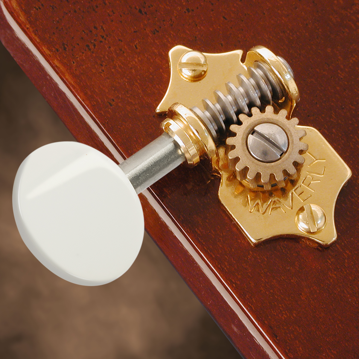 Mit Waverly-Stimmmechaniken klingt deine Gitarre immer gleichmäßig gestimmt und hält auch die Stimmung. Das patentierte Design von Waverly kombiniert Edelstahl mit Bronze für eine glatte, rutschfeste Abstimmung. Die Waverly-Maschinen sind die perfekten Ersatz-Tuner für hochwertige Instrumente und passen präzise, ohne auf älteren Martin- und Gibson-Gitarren zu bohren. Hersteller wie C.F. Martin, Gibson, Collings, Santa Cruz, Huss & Dalton, Sams und Bourgeois wählen Waverlys für ihre besten Instrumente.