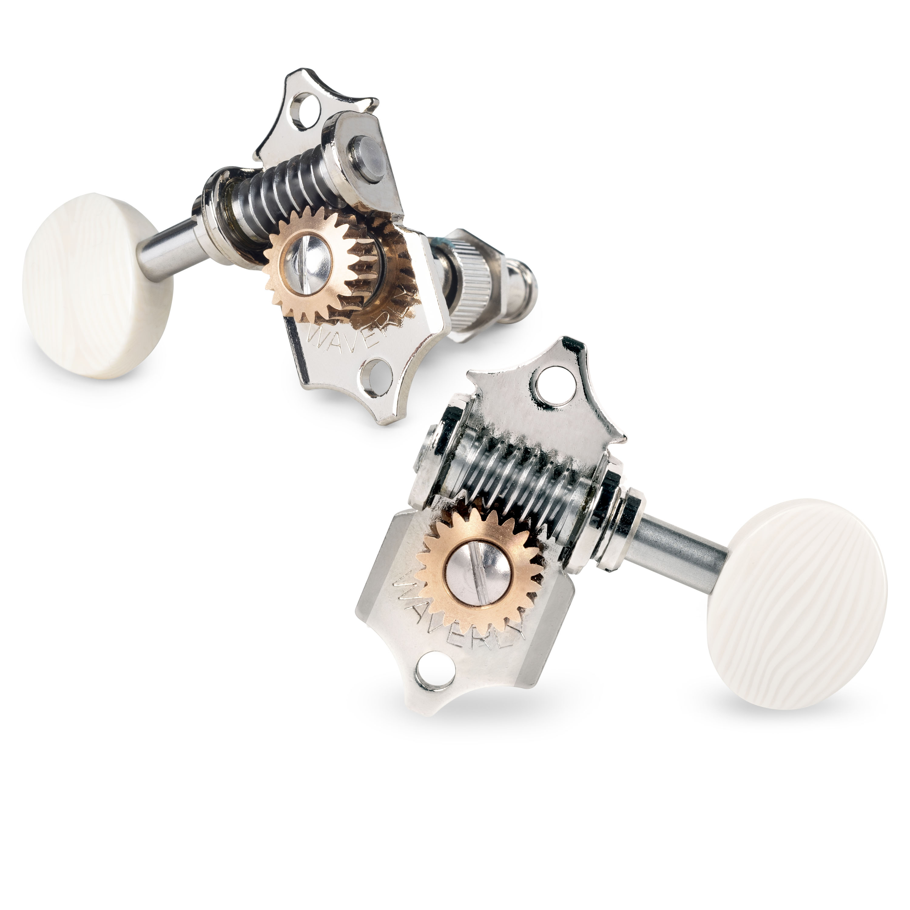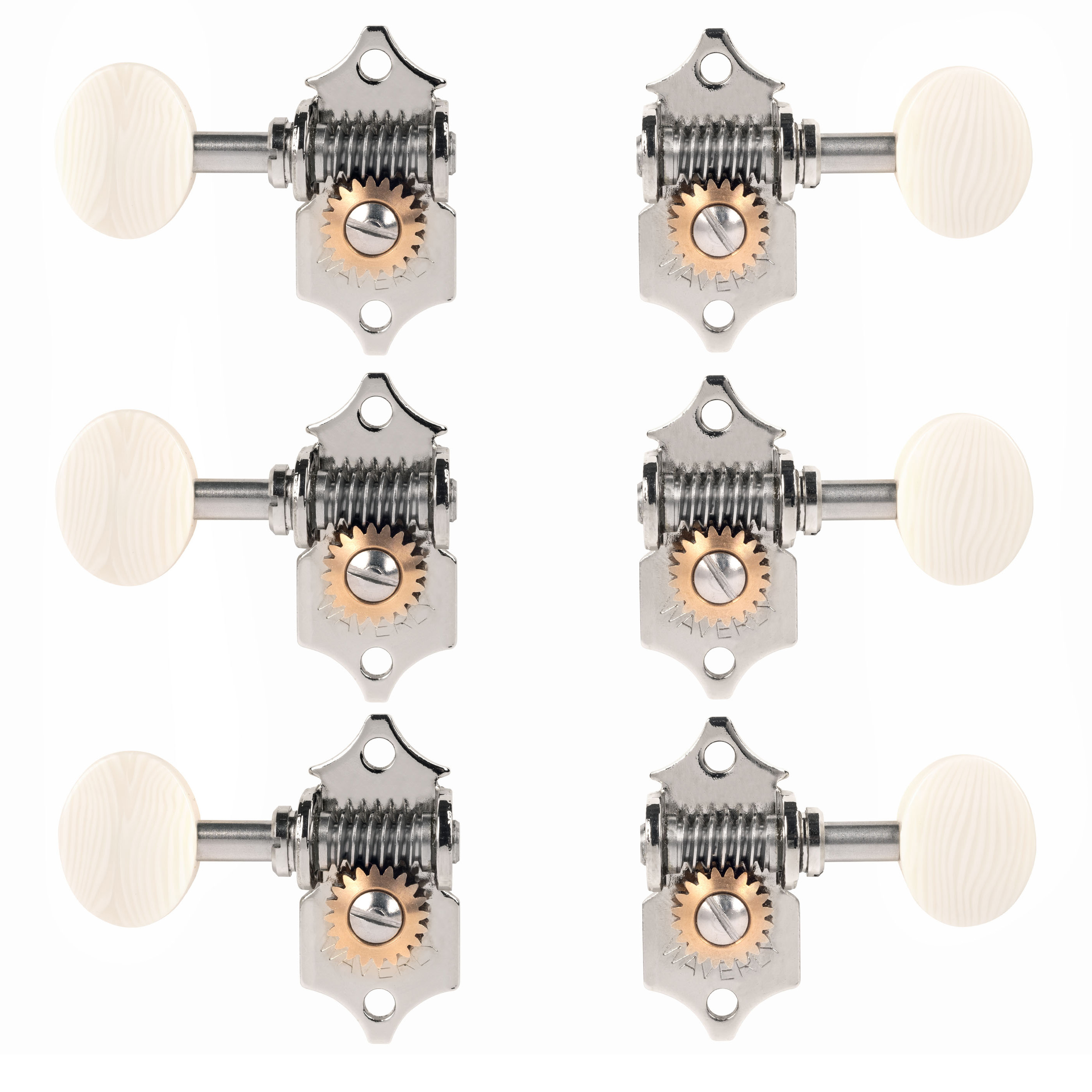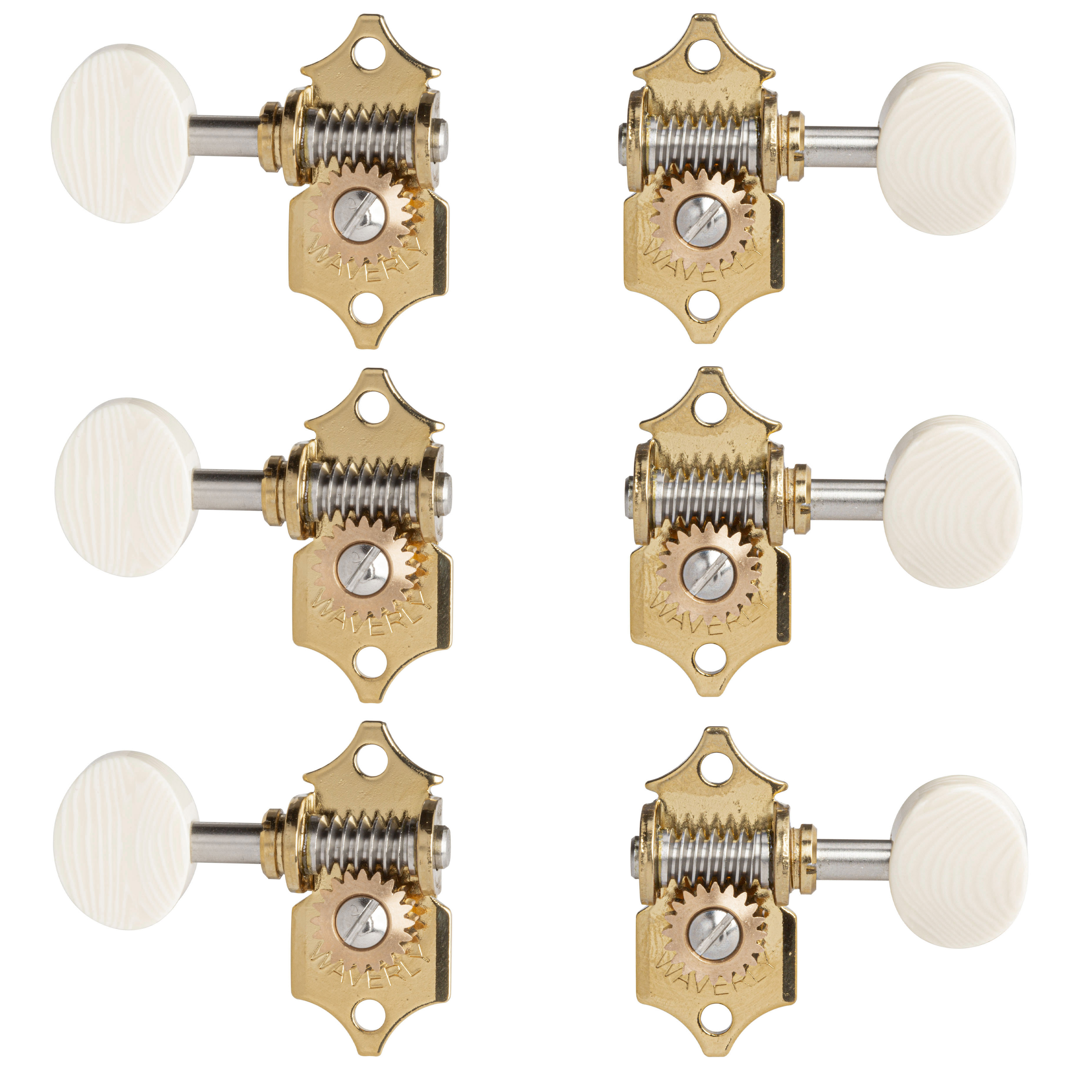 „Waverly High Ratio“-Stimmmechaniken für Gitarre mit Ivoroid-Flügeln für massive Kopfplatten
