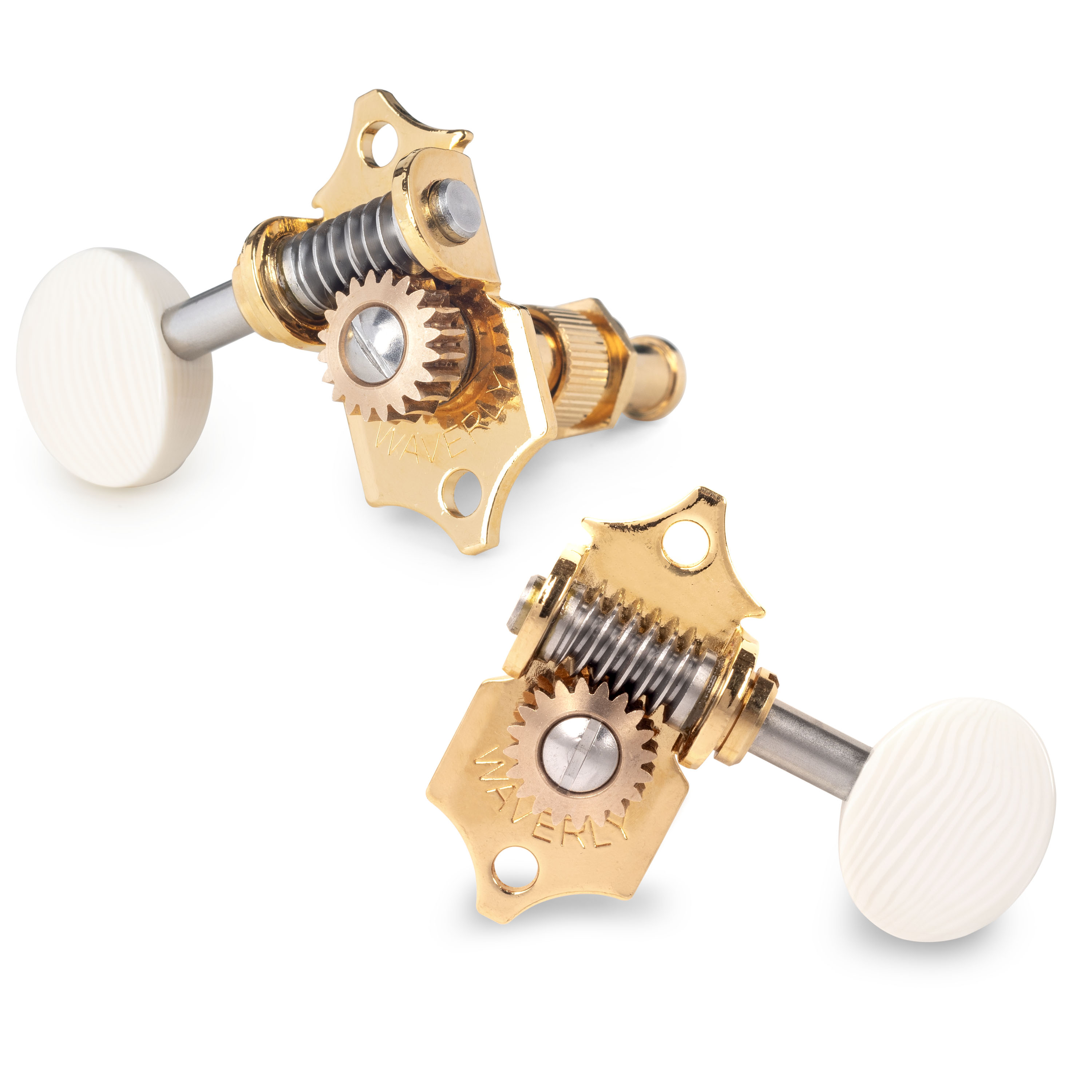 ausgelegt. Wir stellen jedes Set in unserem Ohio-Shop zusammen, und wenn es jemals scheitert, werden sie von unserem Lifetime Promise unterstützt. Kein anderer Tuner ist mit dieser Zuverlässigkeit verbunden. Dieses zeitlose Design, die felsige Konstruktion und der reibungslose, zuverlässige Betrieb machen Waverly Tuner seit mehr als 100 Jahren zum Favoriten sowohl von Musikern als auch von bekannten Gitarrenherstellern.