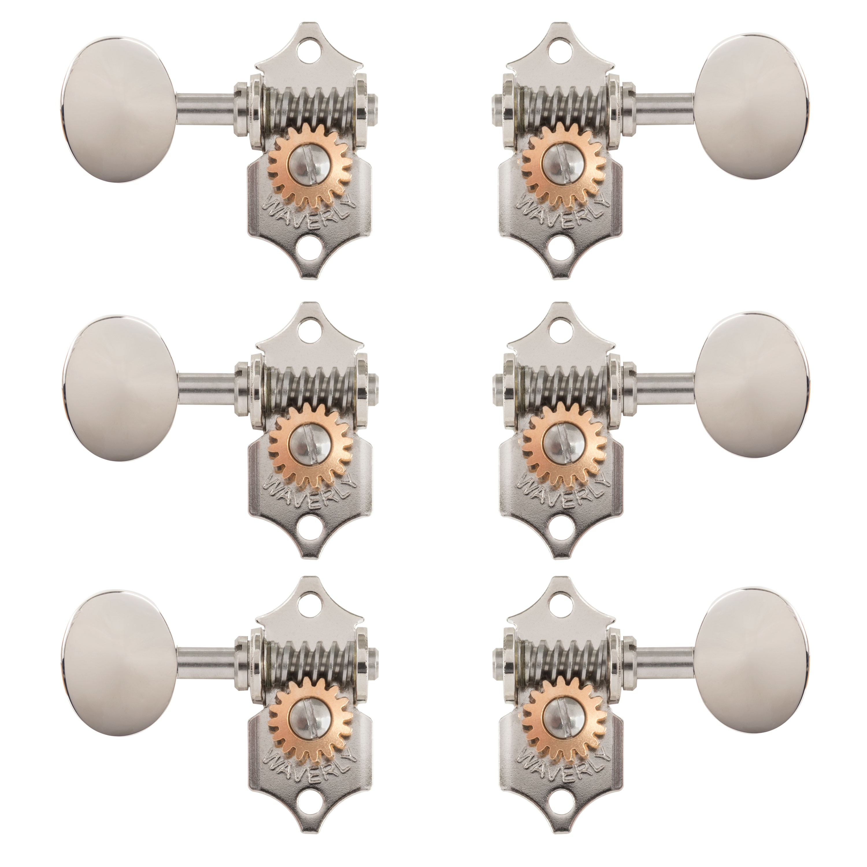 Tuning Machines: Die Wahl der renommierten Gitarrenhersteller für ihre besten Instrumente. Waverlys verfügen über konische Strangstangen im alten Stil und Press-Fit-Innensechskantbuchsen aus Messing. Schneckengetriebe aus Edelstahl mit 16:1 Übersetzungsverhältnis. In diesem Satz mit 6 Schrauben für 3+3 massive Stiftköpfe enthalten. Auch separat erhältlich