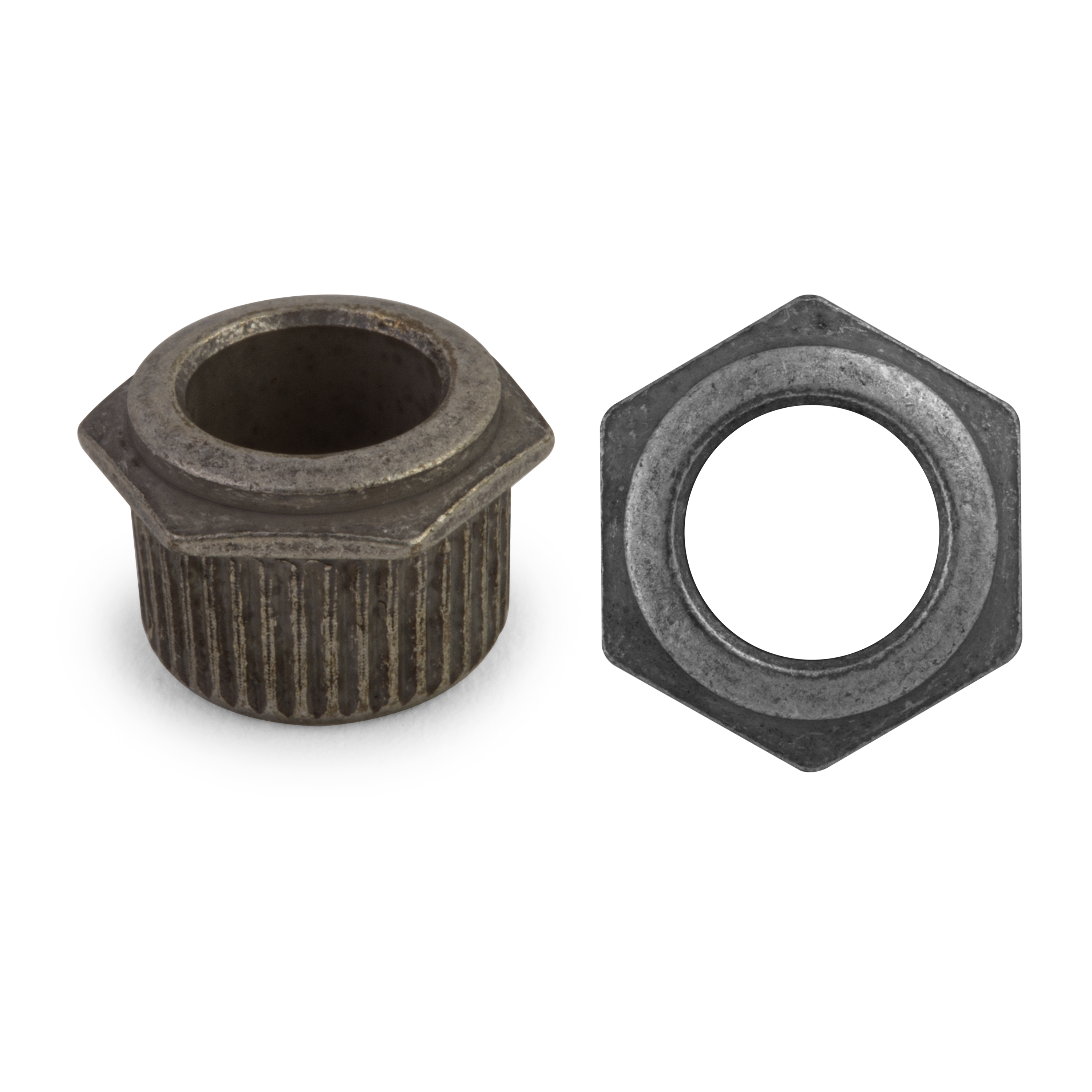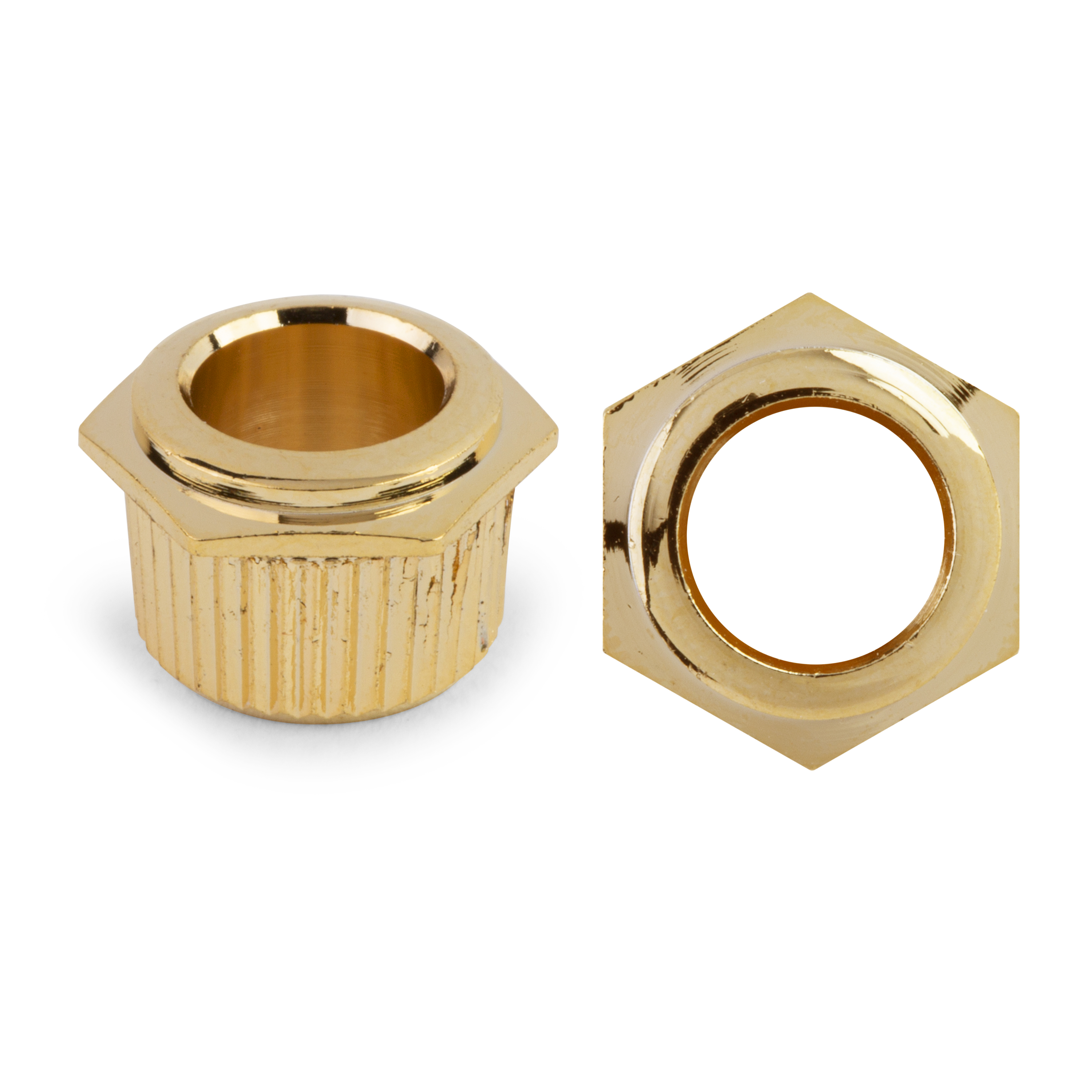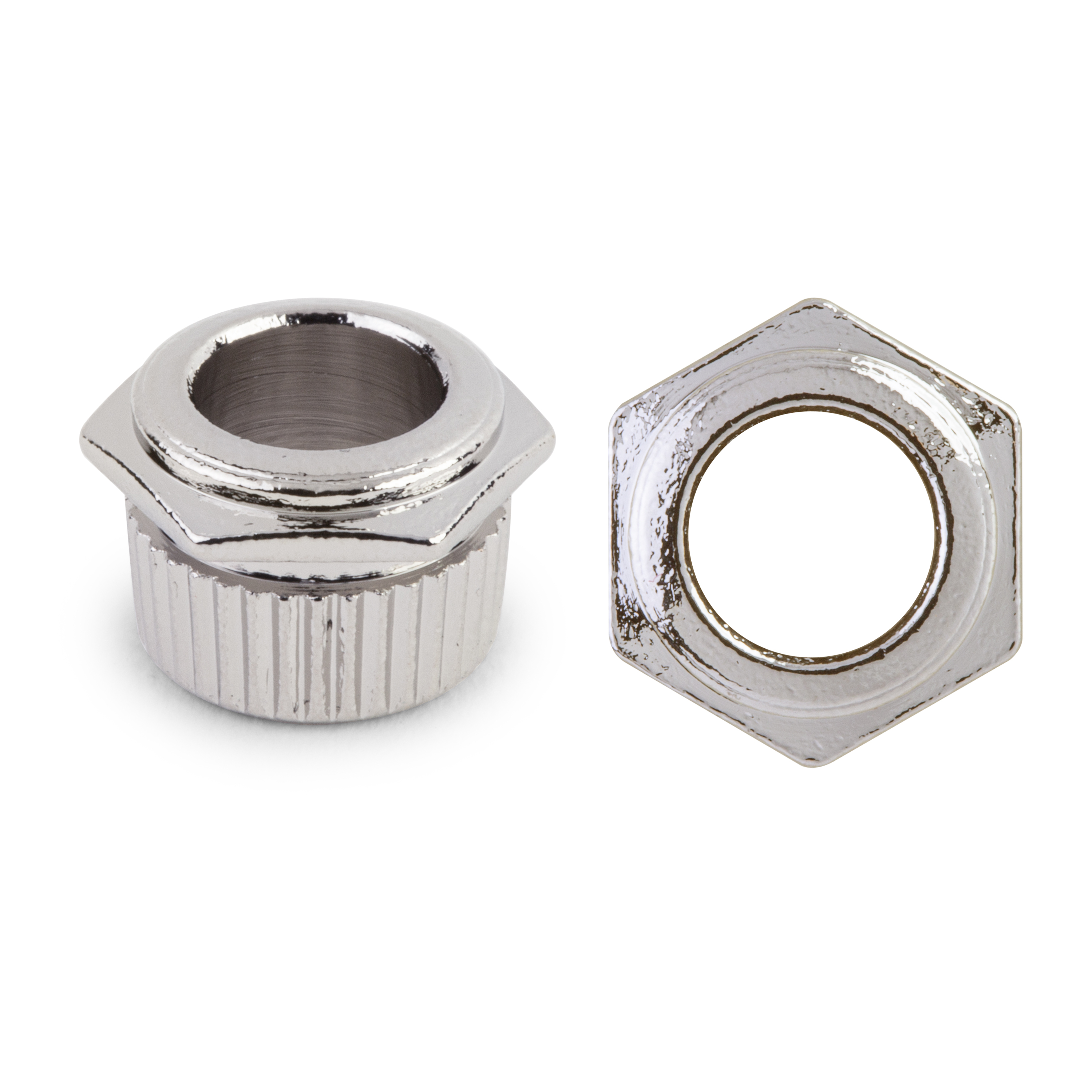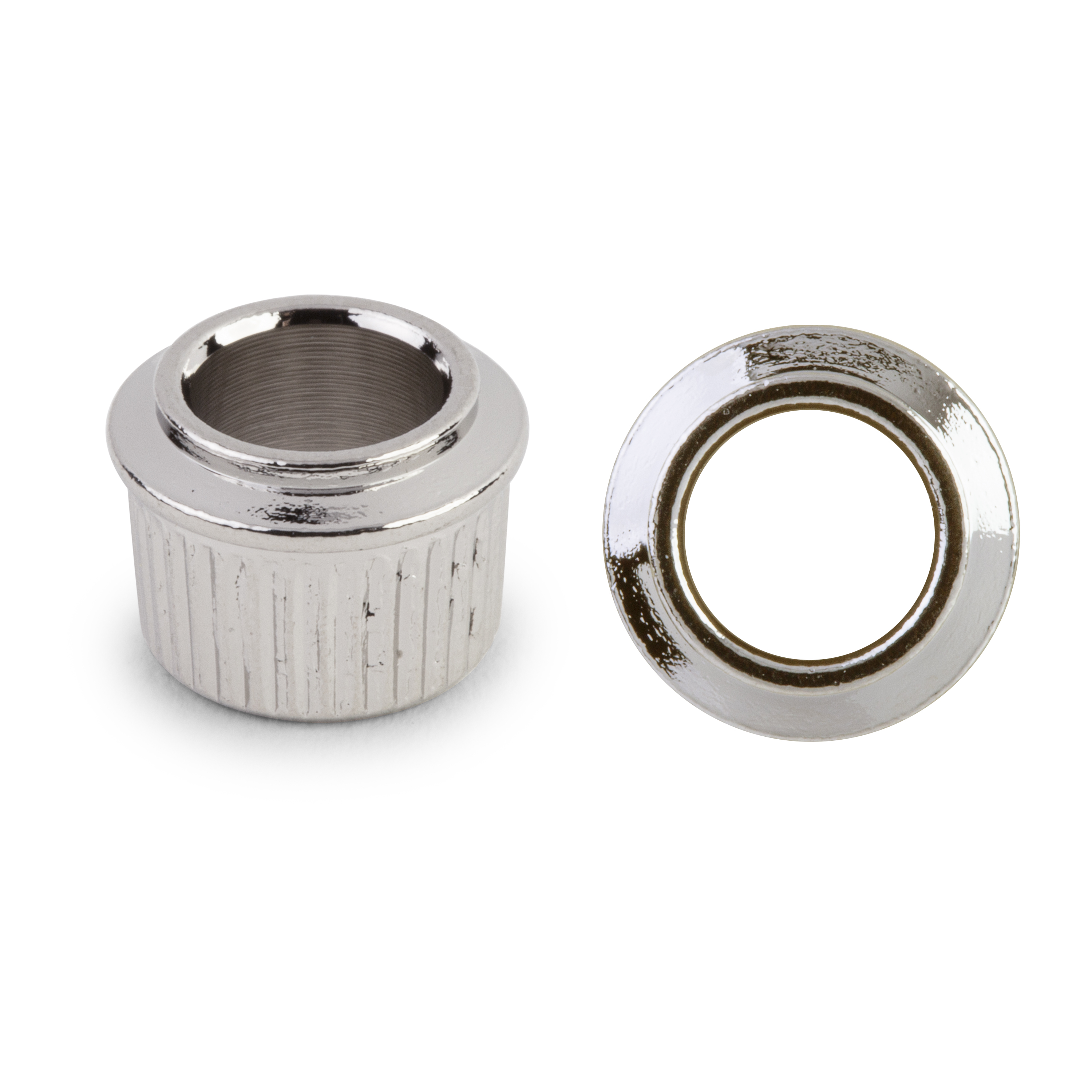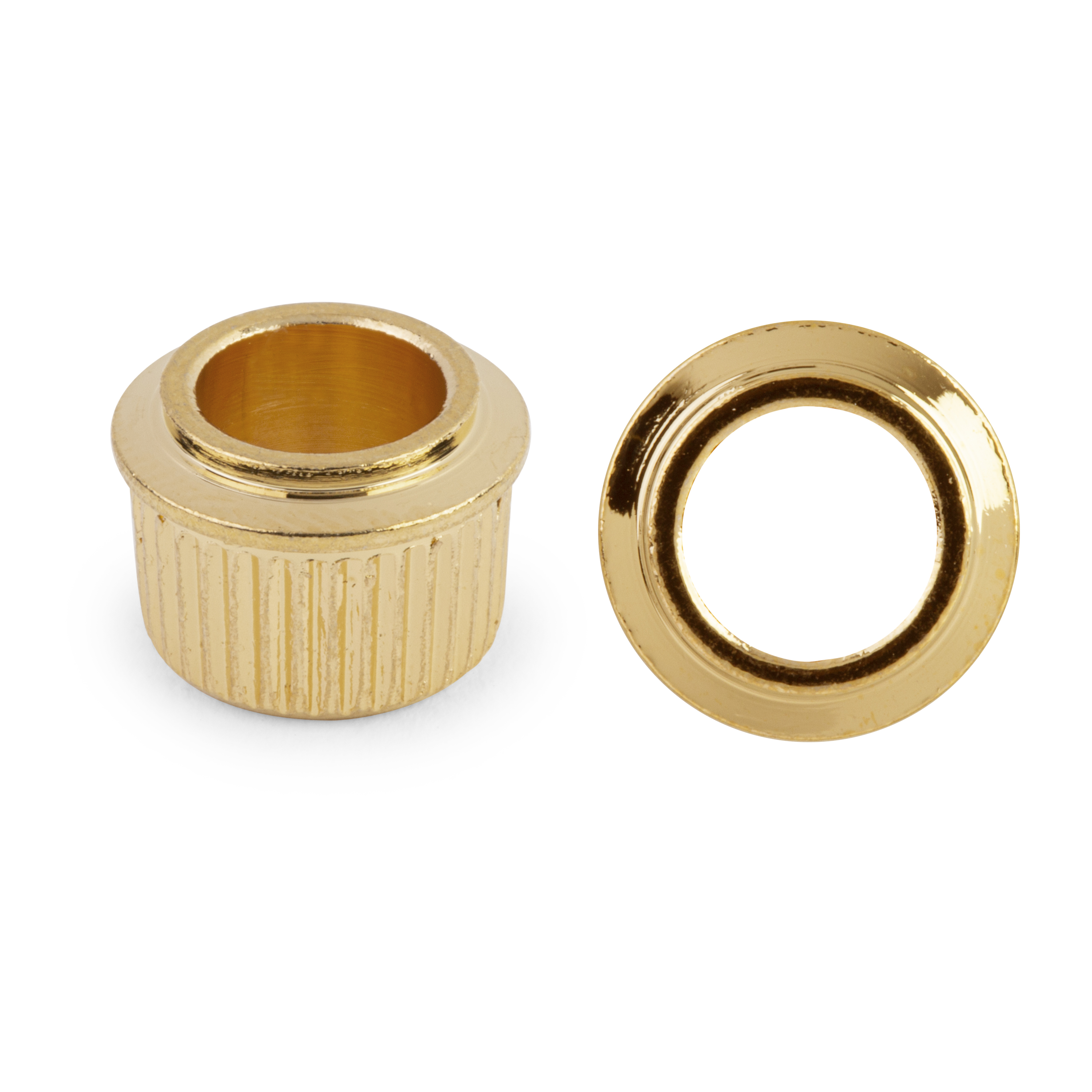 Mit unseren speziellen, konisch zulaufenden, gerändelten Press-Fit-Messingbuchsen können Sie Waverly oder andere Abstimmmaschinen mit 1/4"-String-Stutzen in 3/8"- oder 10 mm -Neglöcher (Gotoh/Grover/Schaller) ohne Nachbohren installieren.