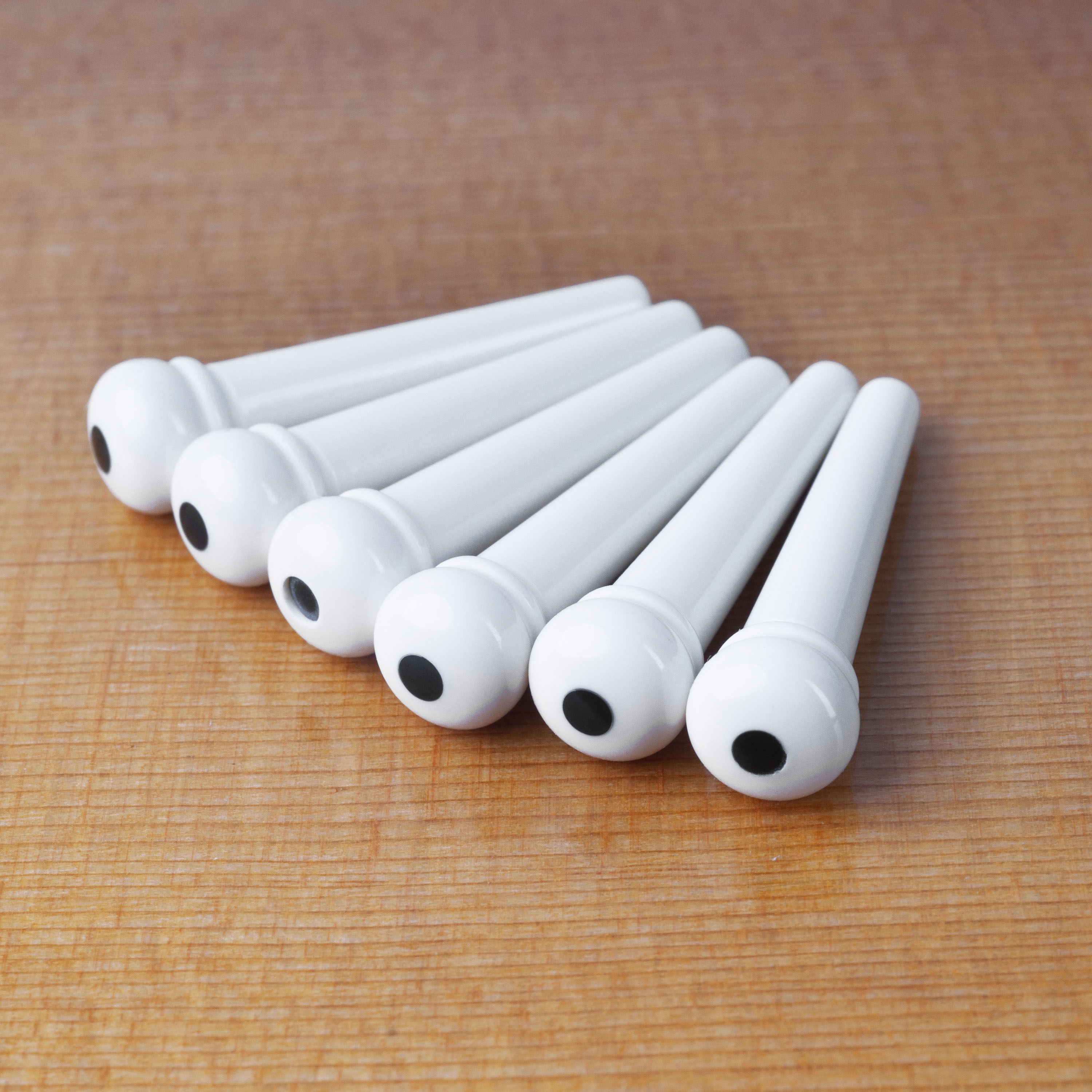 Mit oder ohne eingelegten Punkt erhältlich. Verkauft in Packungen zu je 6 Stück. Diese Brückenstifte entsprechen unseren Endstifte.Schmuck für Ihre Gitarre • Ein Vintage-Material wird neu aufgelegt