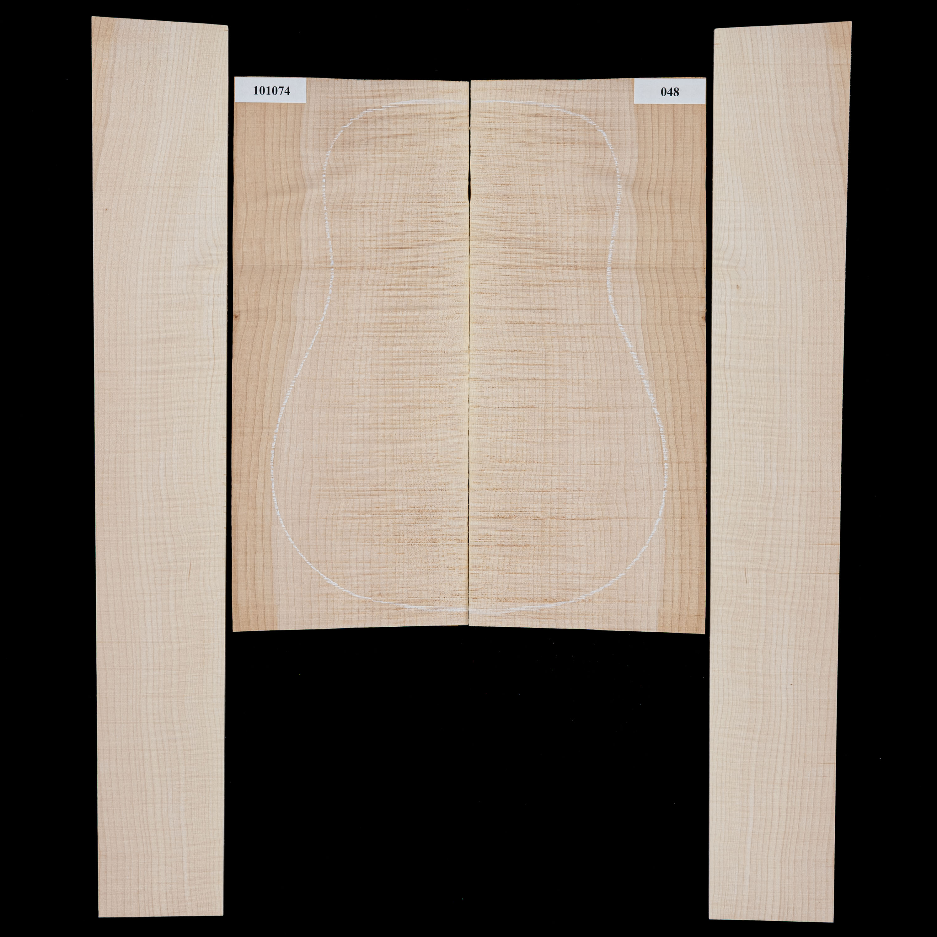 Big Leaf Maple befindet sich an der gesamten nordamerikanischen Küste des Pazifiks, wo das üppige, feuchte Klima Bäume mit einem Durchmesser von bis zu 12 Fuß oder mehr produzieren kann. Ahorn wird traditionell für Archtop- und Elektrogitarren, Geige und Mandoline verwendet und hat sich dennoch bei Flachbauern wegen seines schnellen Klangs und seiner sehr reaktionsschnellen Attacke großer Beliebtheit erfreut.