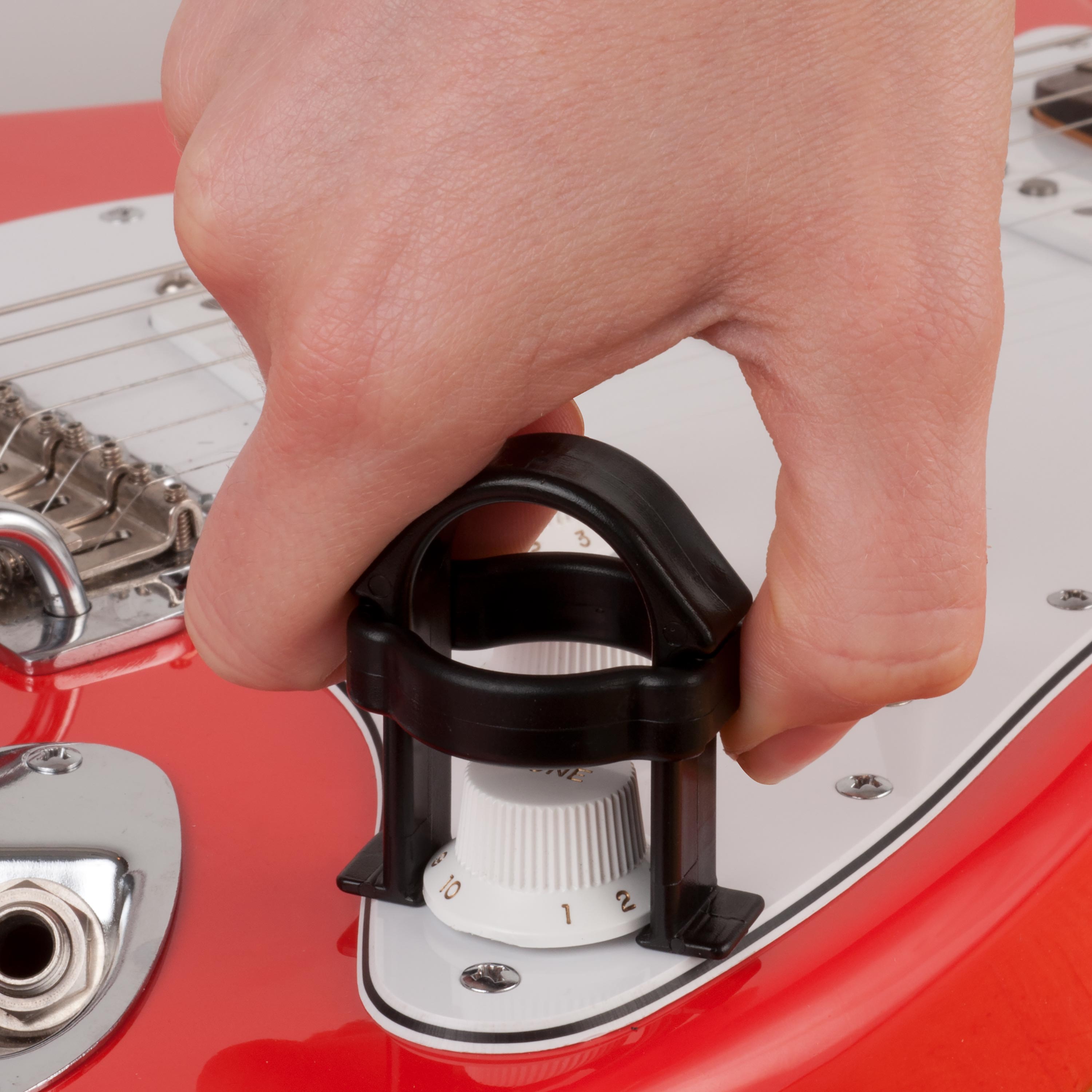 Der Pullit Knopf-Puller ist eine einfache Lösung für hartnäckige Knöpfe. Schieben Sie ihn einfach unter den Knopf, drücken Sie den Spannring nach unten, um einen festen Griff zu erhalten, und ziehen Sie den Knopf vorsichtig ab. Es funktioniert mit Standard-Drehzahlknöpfen, Glockenknöpfen und Strat®-Knöpfen. Der glatte, langlebige Kunststoff schützt Pickguards und Gitarrenoberflächen.