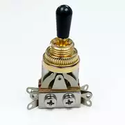 Authentic AxLabs Hardware Hochwertiger Kippschalter. Die Gitarrenkomponenten von AxLabs bieten seit über vierzig Jahren hochwertiges Tragegefühl, Klang und Zuverlässigkeit. Hervorragend geeignet für den Austausch nach Vintage-Spezifikationen sowie für Neubauten. Mit schwarzem Knebelschalterknopf. Eine Vielzahl von Knopfoptionen werden separat verkauft