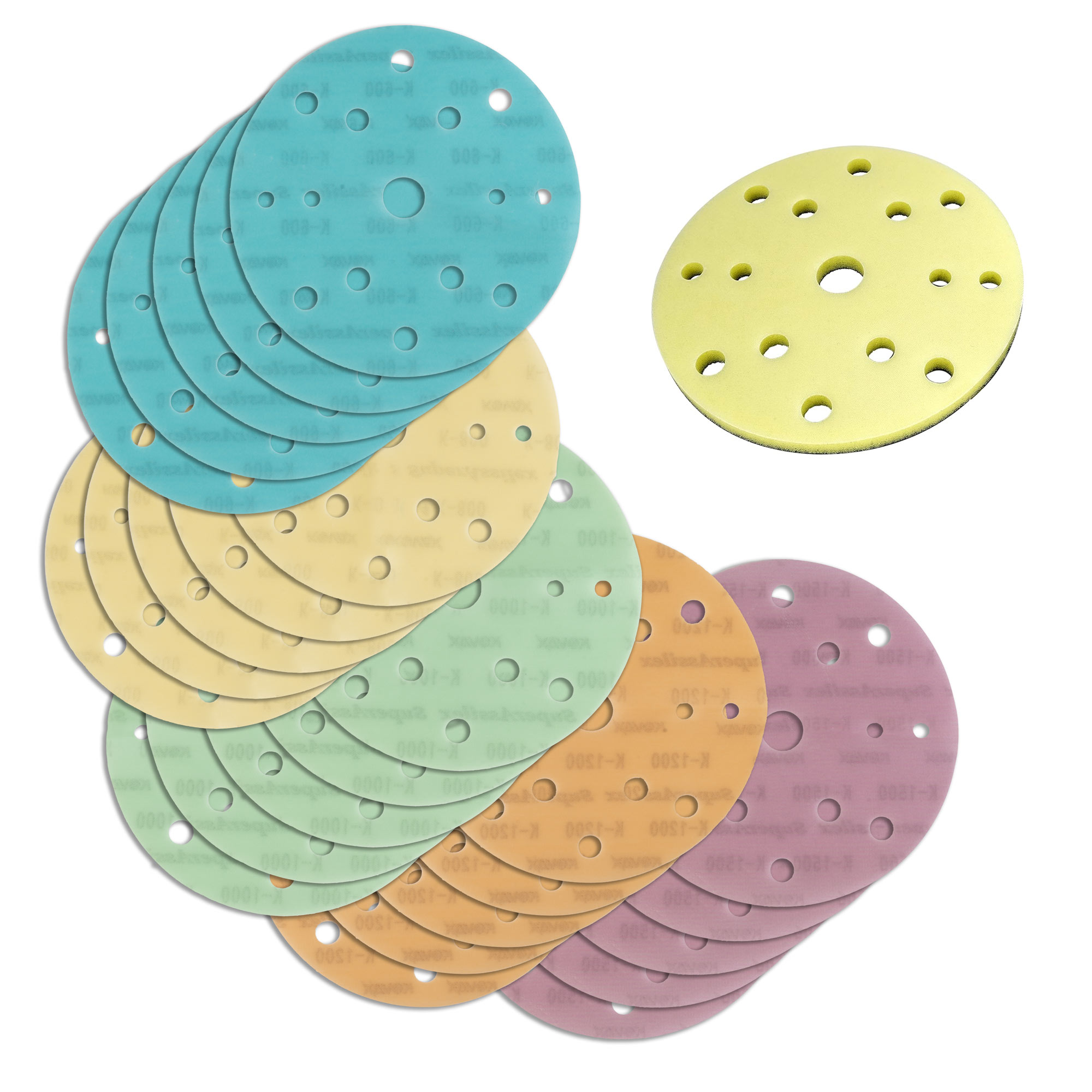 Die Schleifscheiben werden sofort an der weichen Schnittstellenunterlage mit Klettverschluss befestigt, um mühelose Körnungswechsel zu ermöglichen.