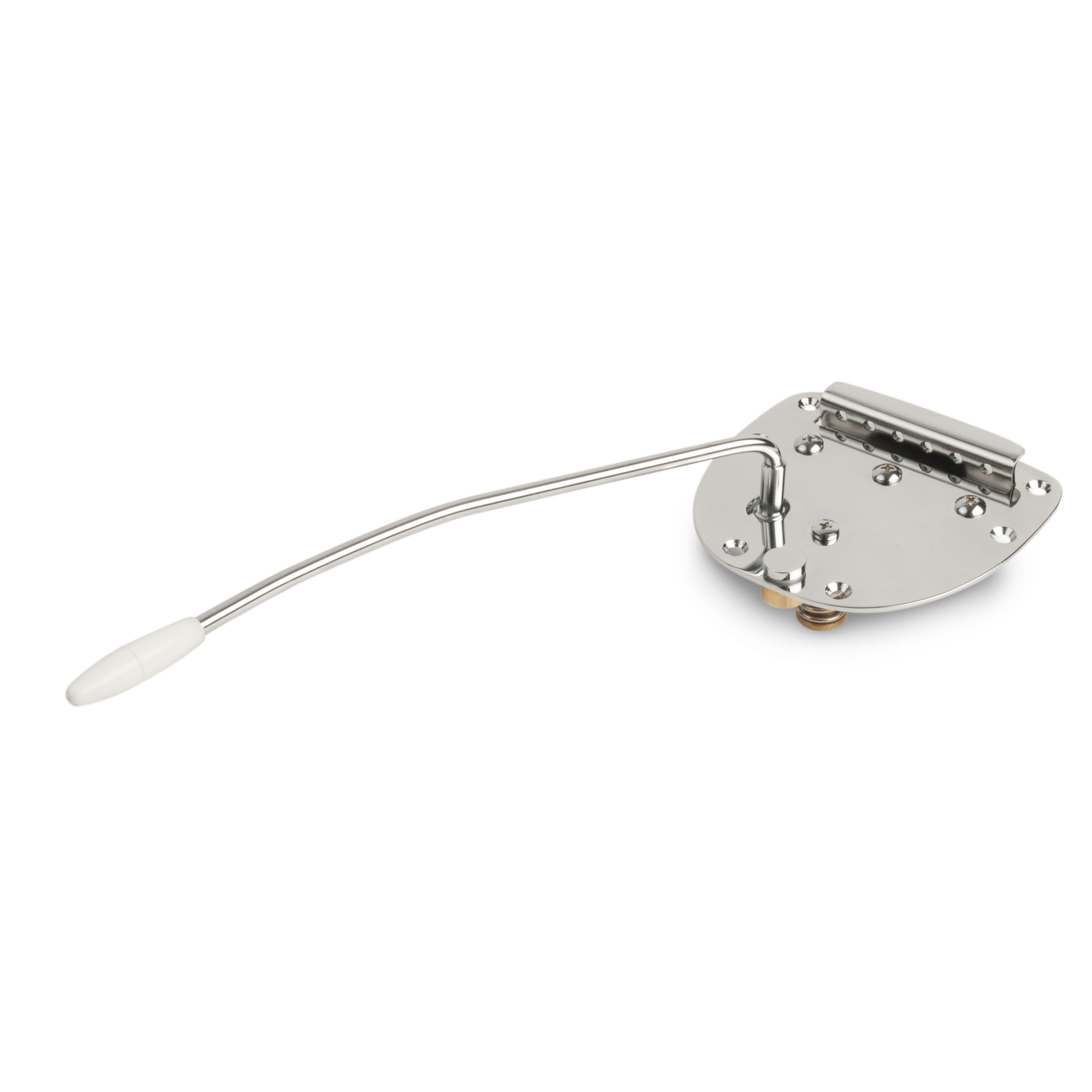 Das Tremolo ist komplett mit Phillips Federspannungs-Einstellschraube und einem Fingerspitzen-Arretierknopf, ein Originalmerkmal, das in anderen Reproduktionen nicht zu finden ist. Die Chromeinheit wird über einen gerouteten Körperhohlraum montiert. Der schwenkbare Stahlarm erstreckt sich mit weißem Kunststoffknopf um ca. 8-3/8" (212,73 mm). Befestigungsschrauben enthalten.