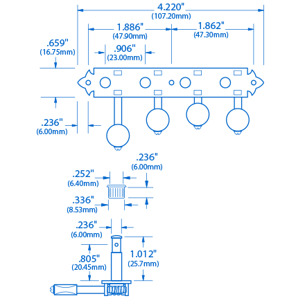 | Durchmesser des Stringpfostens | 0,236" (6 mm) |