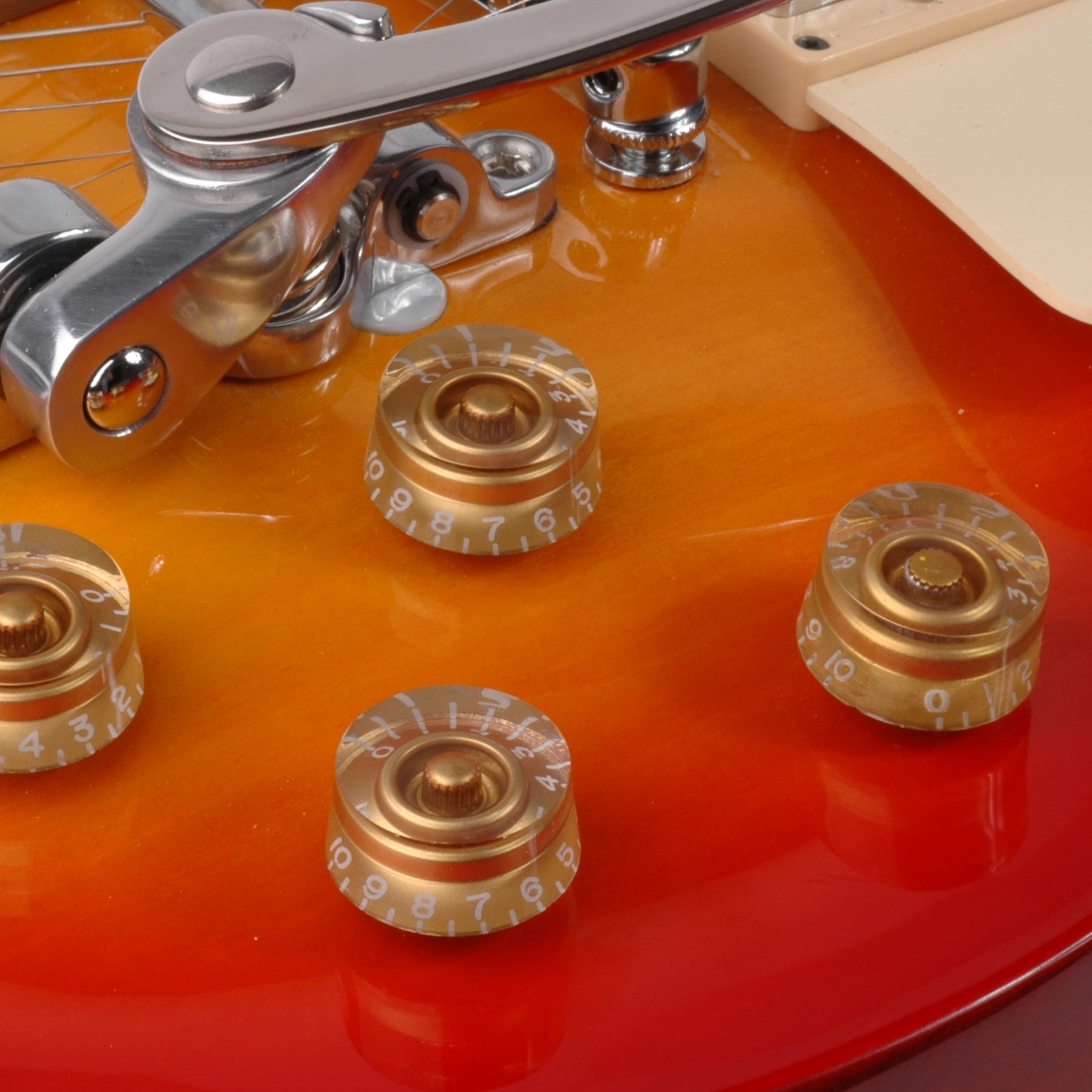 Die fumblefreie Form der Speed-Knöpfe lässt sich leicht um einen kleinen Kleinen wickeln. Sie finden sie auf vielen Gibsons und werden auch als „Hatbox“-Knöpfe bezeichnet.