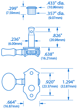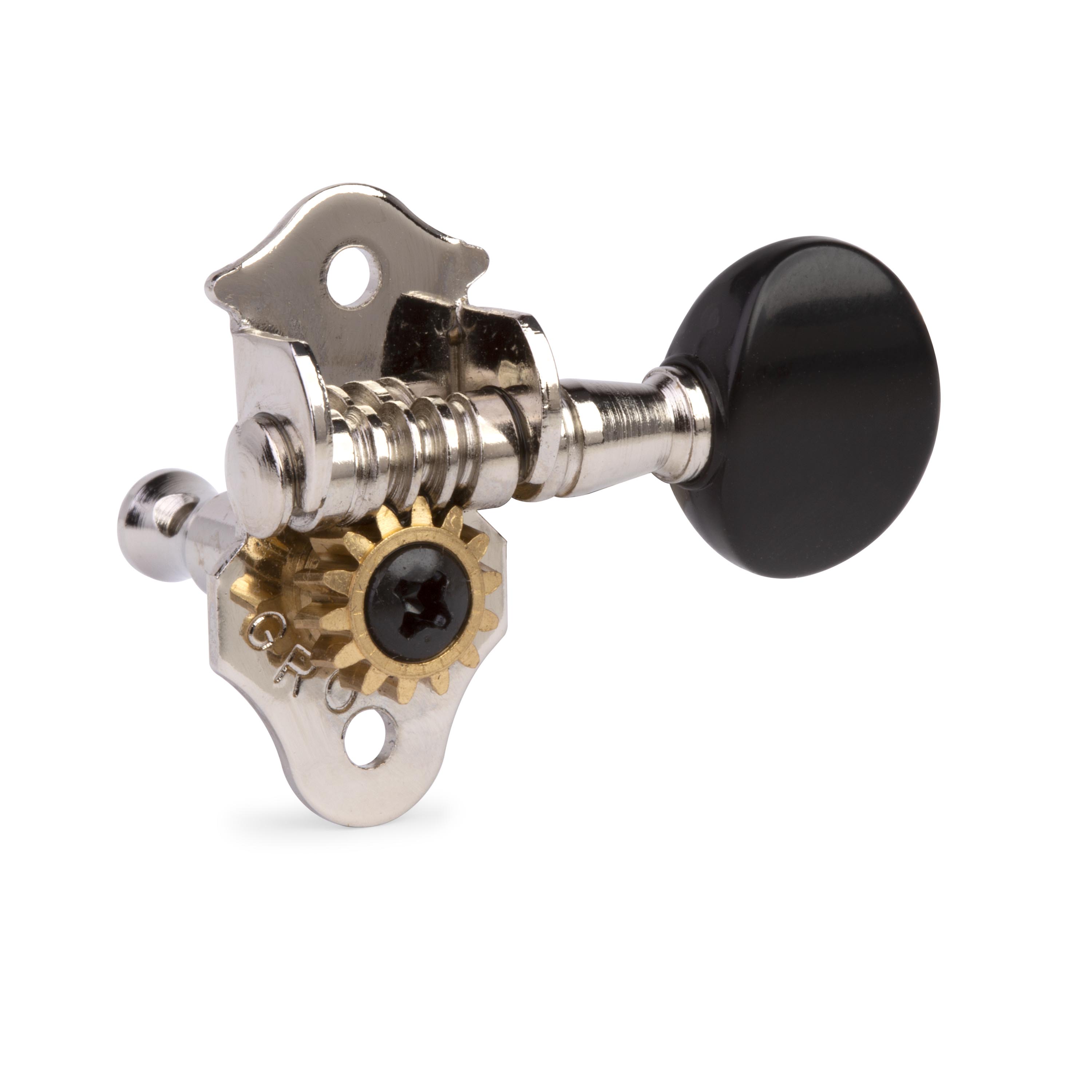Tuner im Gitarrenstil mit kürzeren Strangstangen speziell für UKes, eine neue moderne Alternative zu traditionellen Reibdornen.