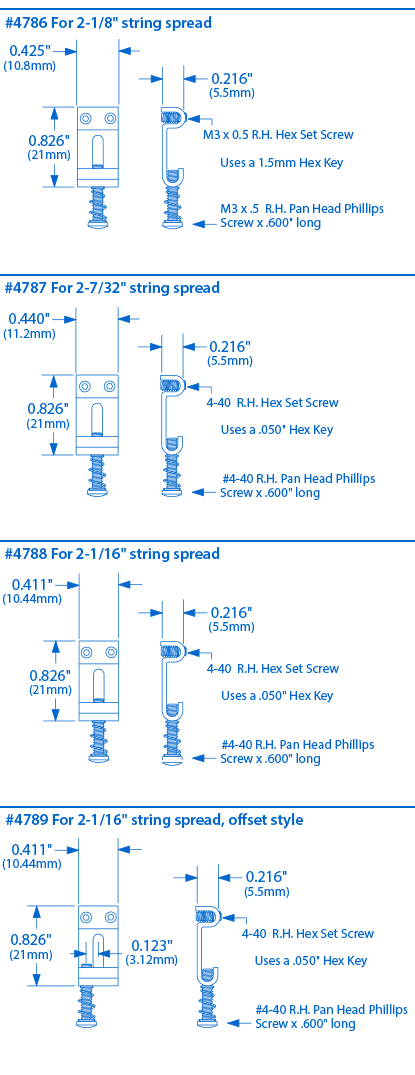Wir haben Sättel für fast jede Strat-Brücke, die ihr habt. Wir haben auch KTS Tune-o-matic Sättel. Bitte messen Sie Ihre Brücke vor der Bestellung.