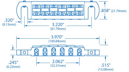 Dieser verstellbare Steg/Tailpiece passt die Intonation des Les Paul® Junior und ähnlicher Gitarren an und ist auch eine großartige Alternative für individuelle Instrumente.Zeichenfolgen- Ausbreitung | Sattel -Radius | Abstand der Säule | ||