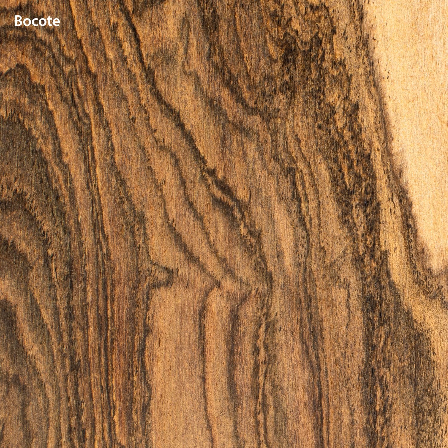 Bocote lässt sich leicht biegen und ist eine fantastische Wahl für Luthiers, die ein Holz suchen, das so kühn aussieht wie es klingt. Egal, ob Sie ein herausragendes Schaustück oder einen neuen Lieblingsspieler bauen, dieses Holz ist bereit, Ihr nächstes großartiges Instrument zu inspirieren.