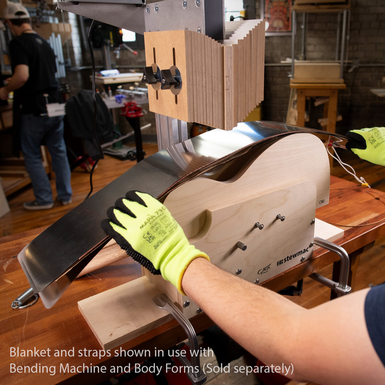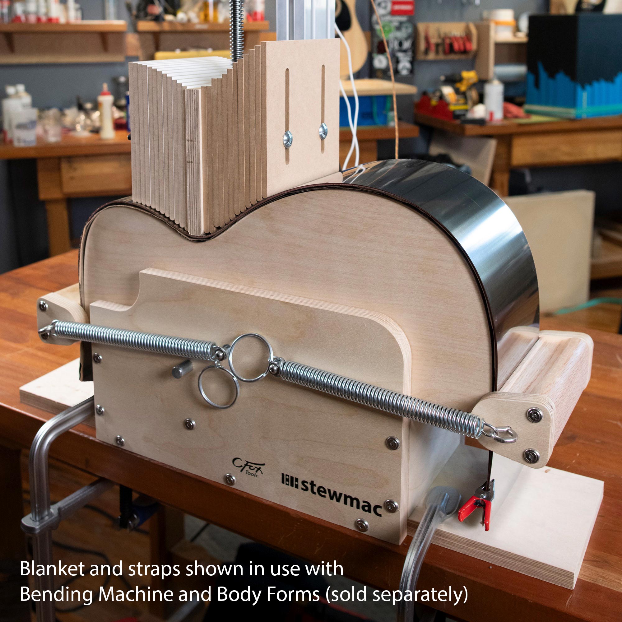 Für ein präzises Biegen benötigen Sie eine Heizdecke und Stahl-Biegebänder, um den Dampf zu fokussieren und die Wärme reibungslos zu übertragen. Diese Heizdecke hat die richtige Größe, Form und Dicke zum Biegen der akustischen Gitarrenseiten. Mit gleichmäßiger Hitze von Ende zu Ende passen sich Ihre Seiten der Form Ihrer Biegeformen ohne Überraschungen oder kalte Stellen an. Das ist entscheidend, wenn die Hitze und der Dampf stark werden!
