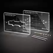 Pickup Routing Templates für Jazz Bass dienen zum Verlegen der Körperhöhle und zum Pickup Cutout im Pickguard. Jeder Satz enthält 2 Schablonen zum Bohren von Montagelöchern und Hohlraumecken und einen weiteren zum Verlegen des Aufnahmehohlraums. Ebenfalls enthalten sind Bohrer, Indexierungsstifte und Anweisungen.