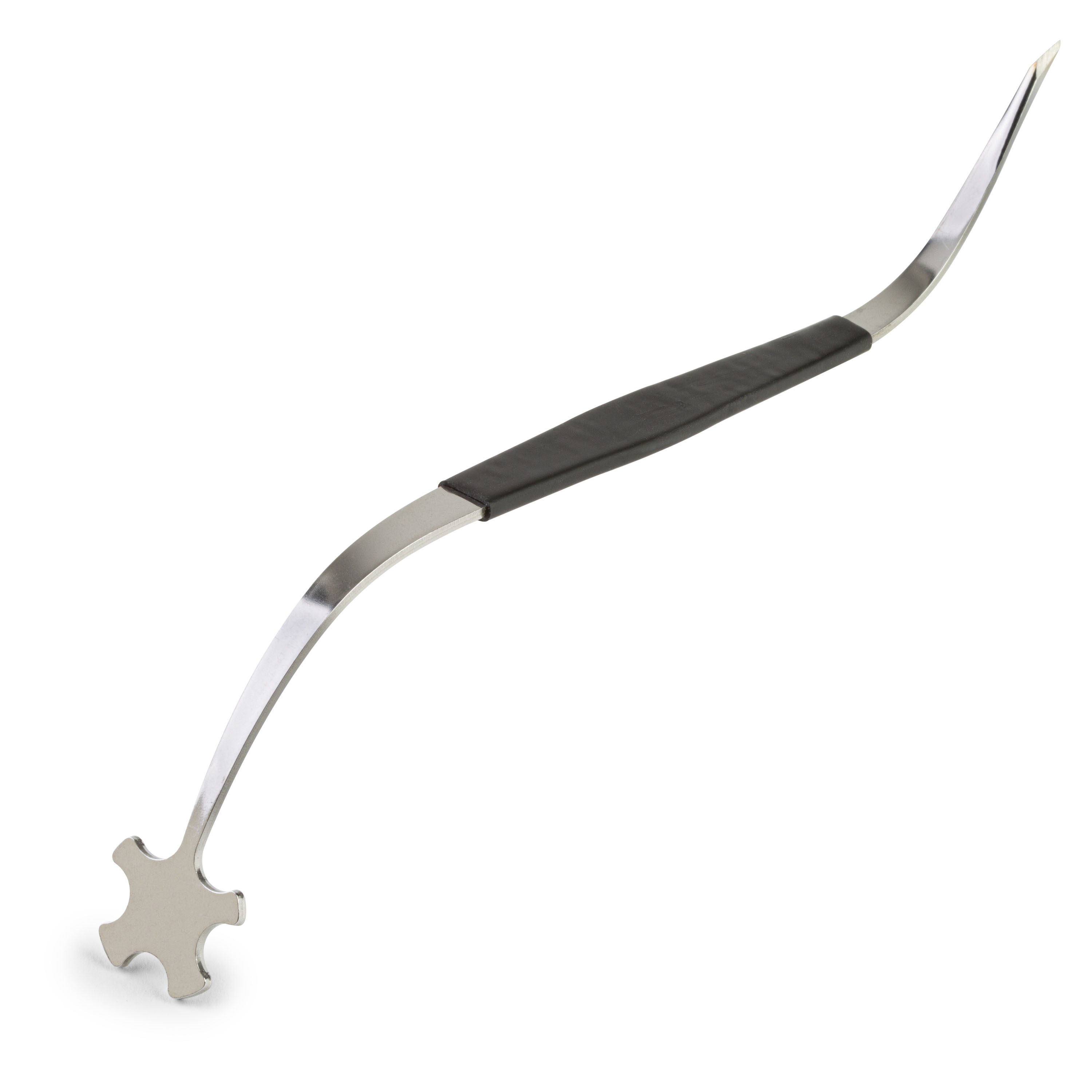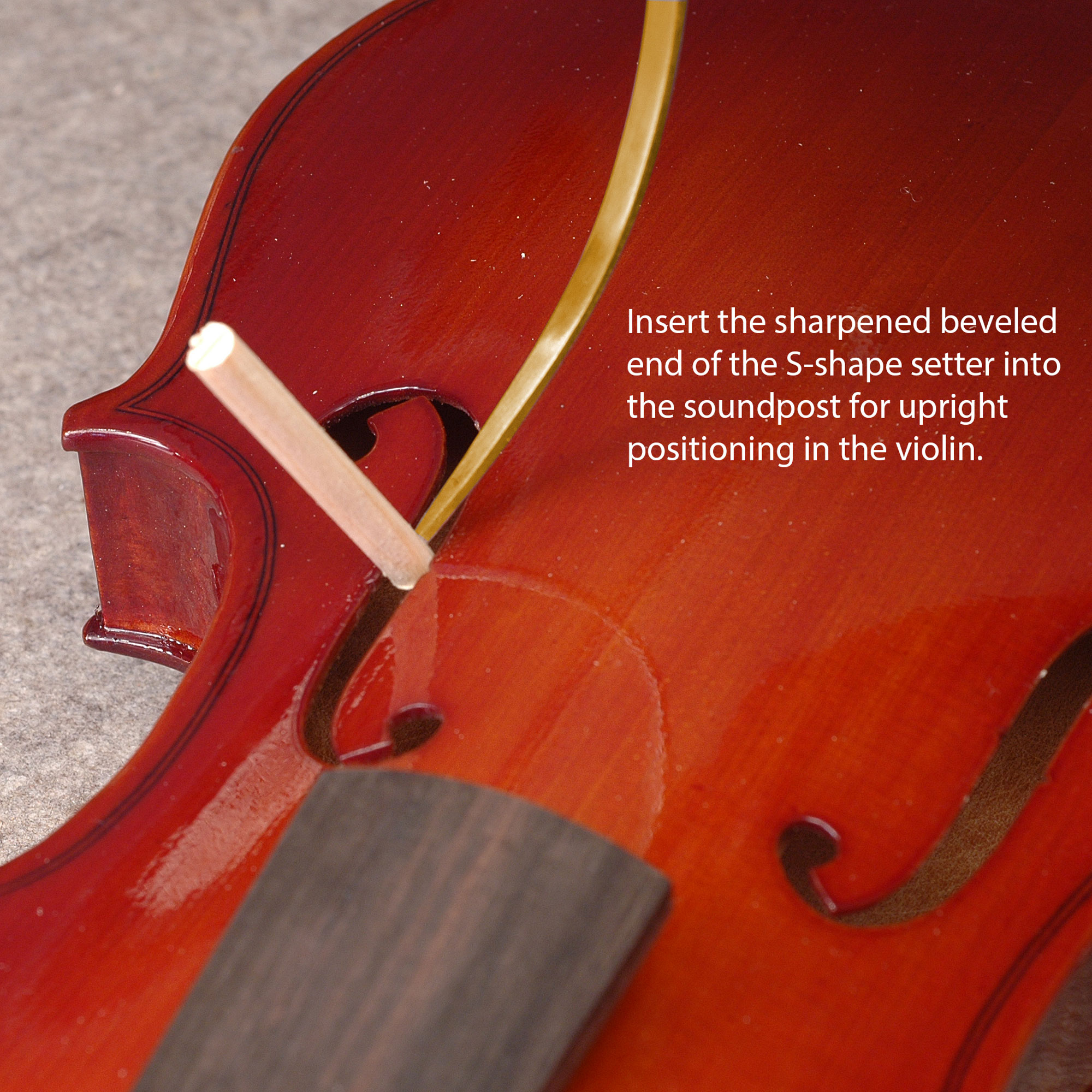 S-förmiger Setter Nr. 0388 : Das geschliffene abgeschrägte Ende zur aufrechten Positionierung in der Geige in den Schallpfosten einführen. Verwenden Sie das gekerbte Ende, um den Pfosten in die endgültige Position auszurichten.