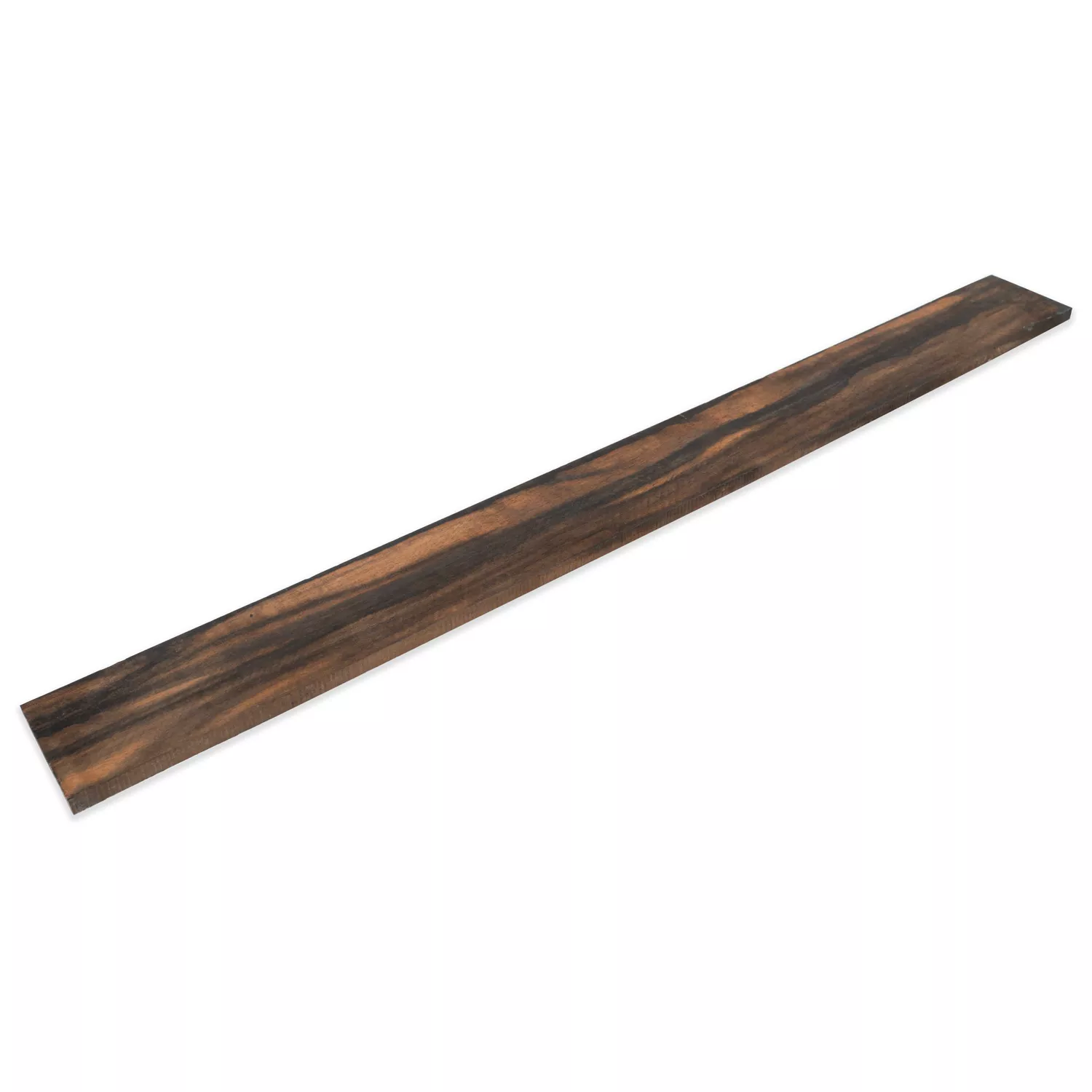 Macassar Ebony (Diospyros celebica) ist eine kühne und schöne Fingerboard-Auswahl, die für ihre satten braunen, schwarzen und goldenen Streifen bekannt ist, die sie von traditionellerem Ebony abheben. Jedes Board hat sein eigenes dramatisches Flair, von dezenten Schleifen bis hin zu intensiven, kontrastreichen Varianten. Sie ist dicht, stabil und besticht durch einen wunderschönen, hochglänzenden Look. Sie ist die erste Wahl für Bauherren, die sich ein erstklassiges Tragegefühl und einen auffälligen Look wünschen. Diese sind in gleichbleibender Qualität schwer zu finden – wenn sie weg sind, sind sie weg.
